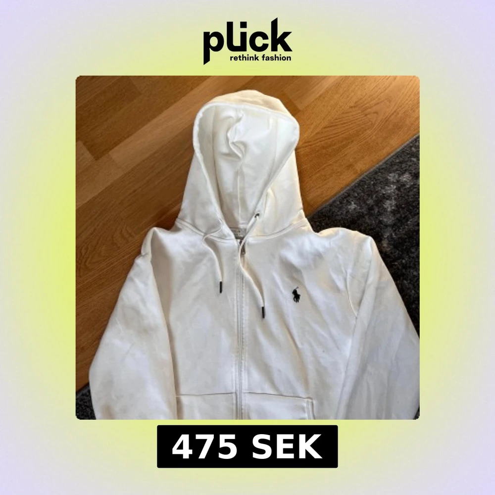 Säljer en stilren vit hoodie från Ralph Lauren med dragkedja och det klassiska logotypen broderad på bröstet. Perfekt för en avslappnad look. Hör av dig vid intresse!