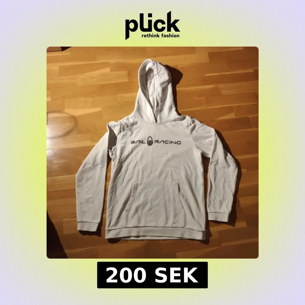 Säljer en vit hoodie från Sail Racing med svart logotyp på bröstet. Tröjan har en klassisk känguruficka och en bekväm huva. Perfekt för en avslappnad stil.
