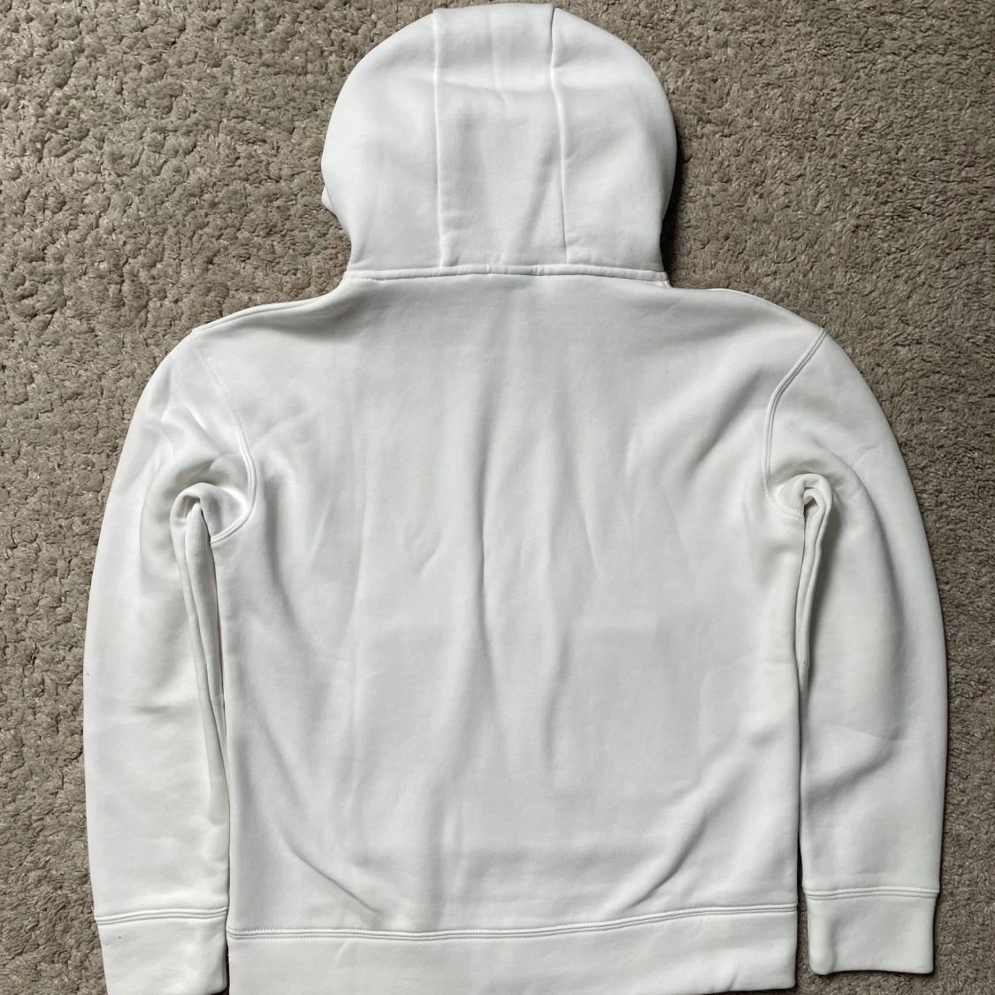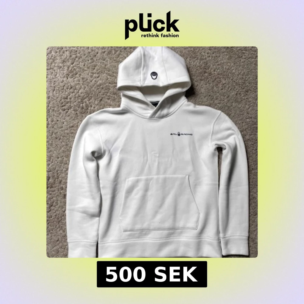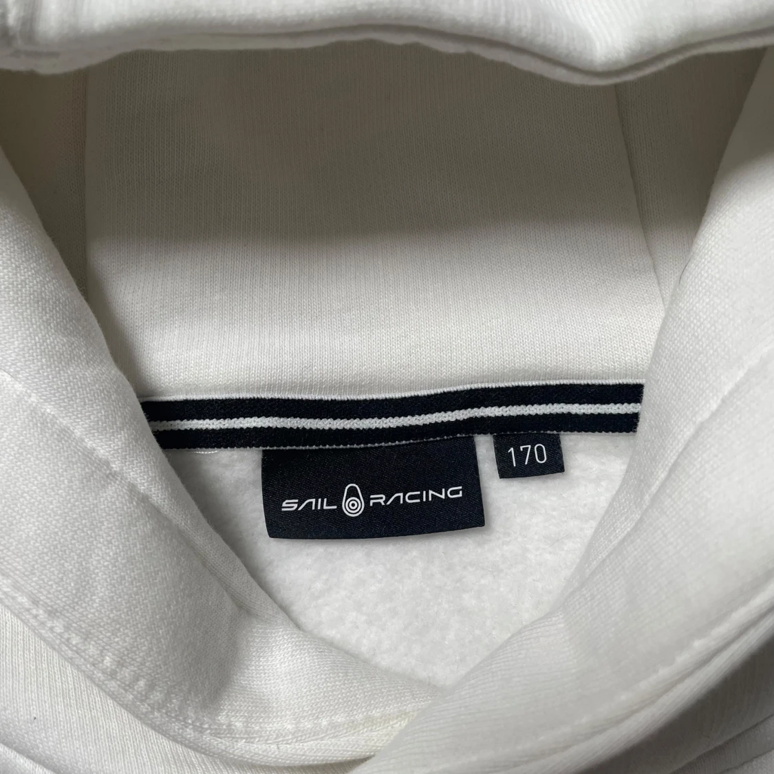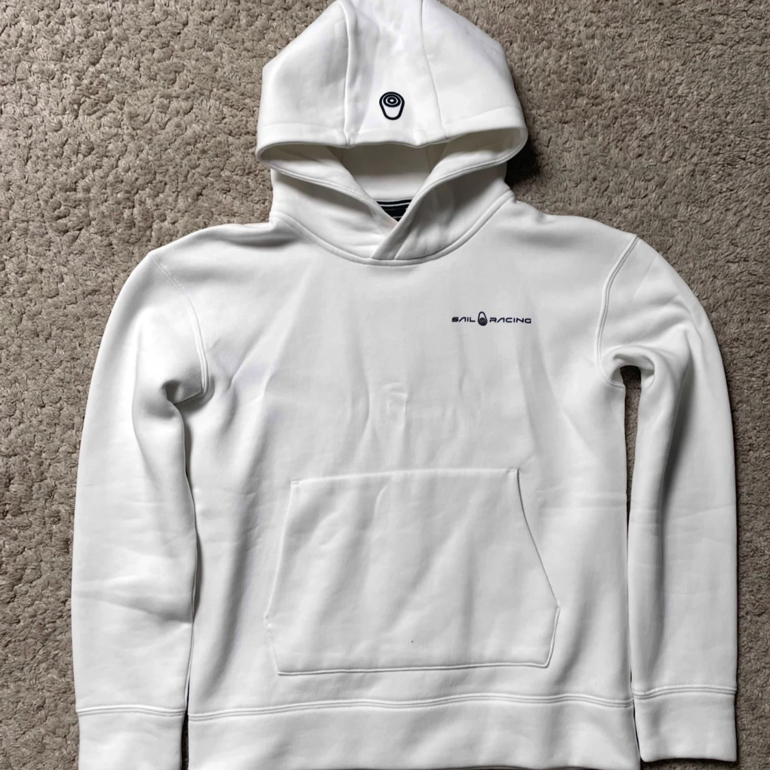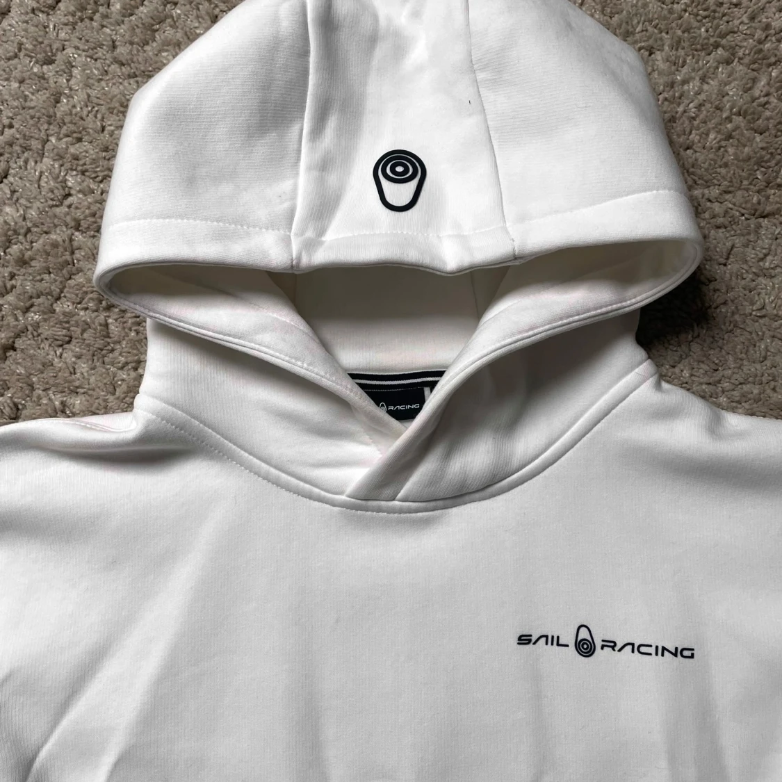 Säljer en stilren vit hoodie från Sail Racing med logga på bröstet och på huvan. Tröjan har en klassisk känguruficka framtill och är tillverkad i mjukt material. Perfekt för en avslappnad look.