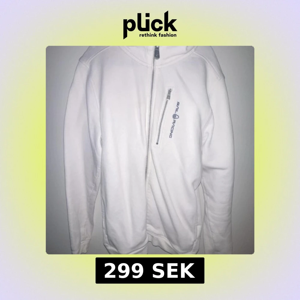 Vit hoodie från Sail Racing med dragkedja och en bröstficka med logga. Tröjan har huva och långa ärmar, perfekt för en sportig och avslappnad stil. Materialet känns mjukt och bekvämt. Hör av er vid funderingar😁
