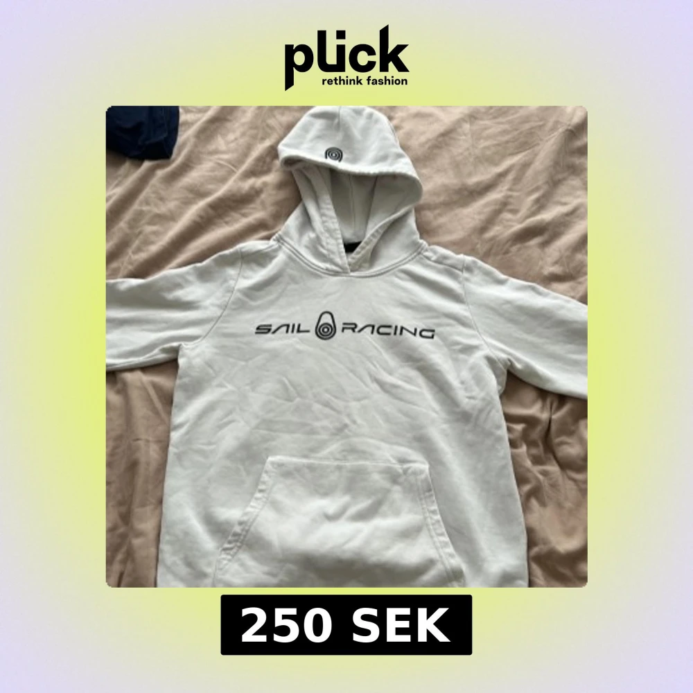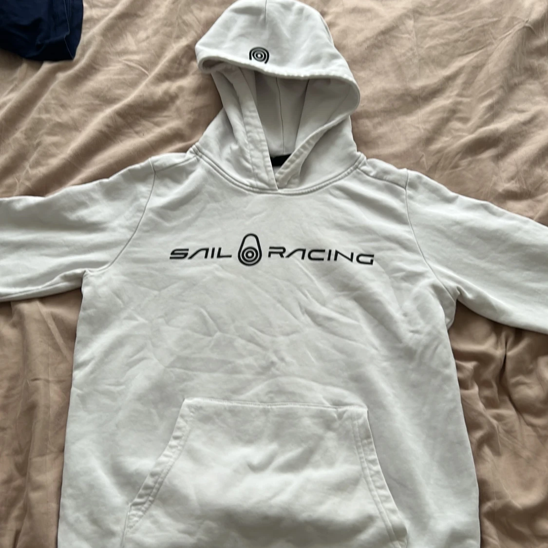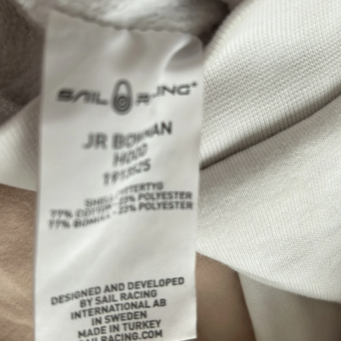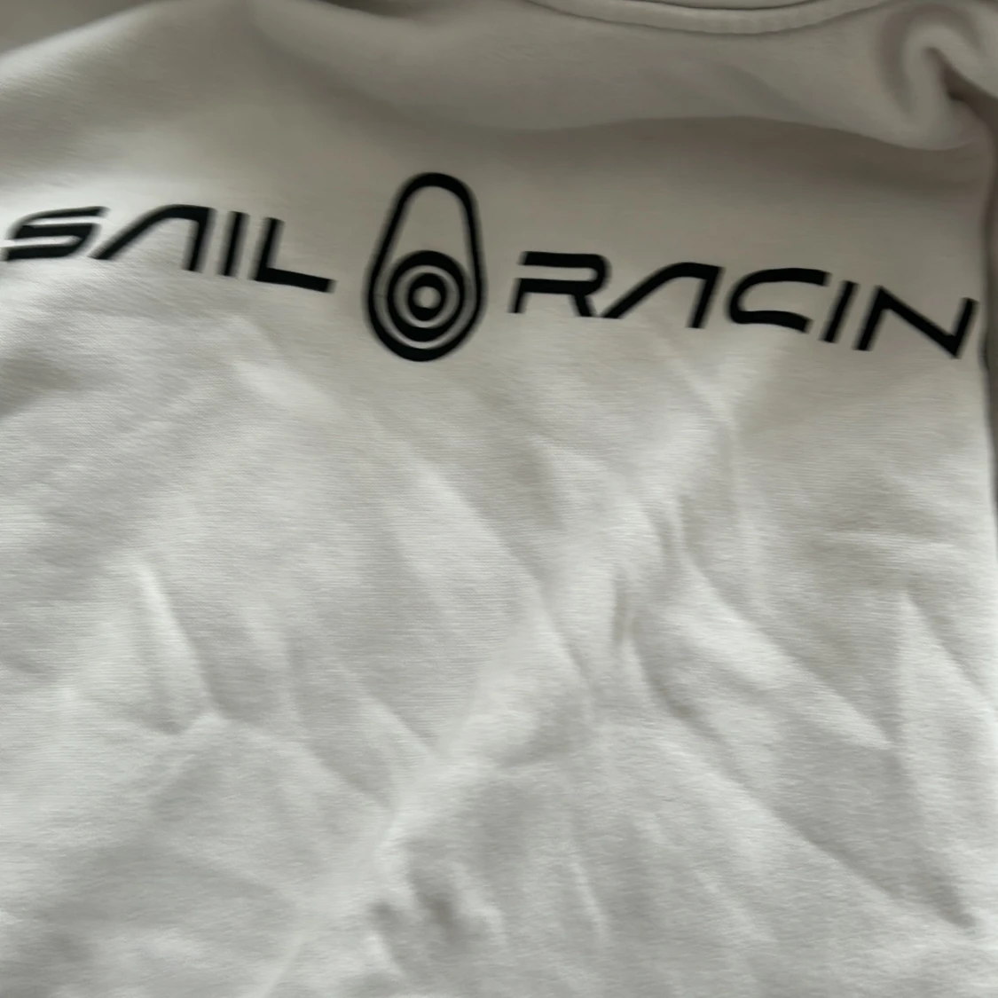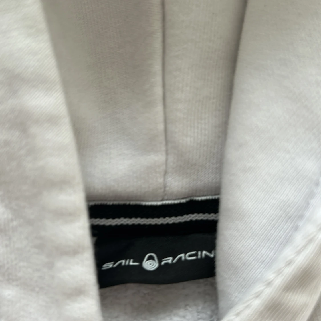 Vit hoodie från Sail Racing med svart logga och text på bröstet. Tröjan har huva, magficka och långa ärmar. Tillverkad i en mjuk bomulls- och polyestermix som känns skön mot huden. Pris kan diskuteras