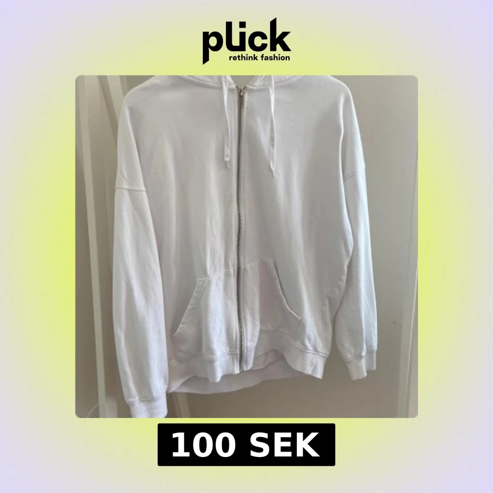 Säljer en vit hoodie från BikBok i storlek XS. Tröjan har dragkedja framtill, huva med snören och två stora fickor. Perfekt för en chill och avslappnad stil. Tillverkad i mjuk bomull som känns skön mot huden. Knappt använd