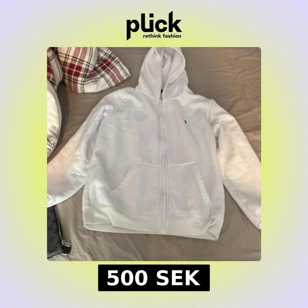 Säljer en stilren vit hoodie från Ralph Lauren med dragkedja och klassisk logga på bröstet. Tröjan har långa ärmar och en praktisk känguruficka framtill. Perfekt för en avslappnad look.