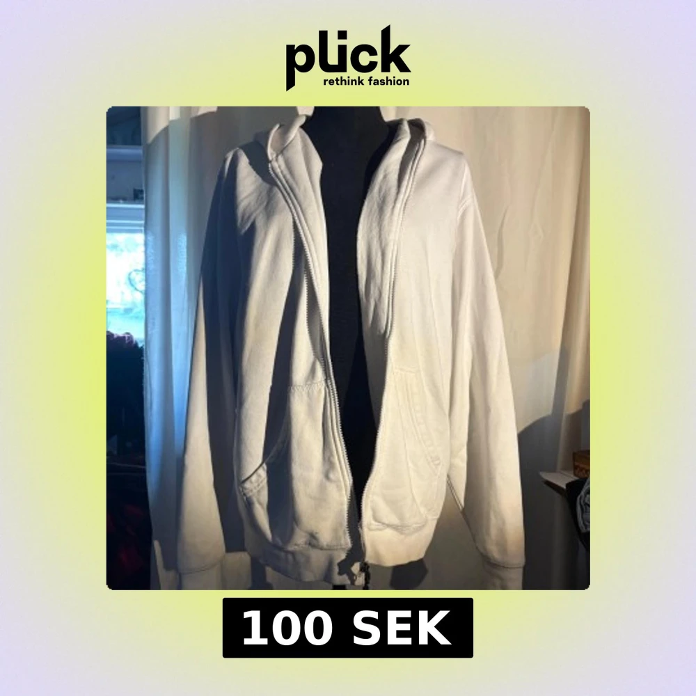 Enkel och stilren vit hoodie med dragkedja framtill och två fickor. Tröjan har huva och långa ärmar, perfekt för en chill och avslappnad look.
