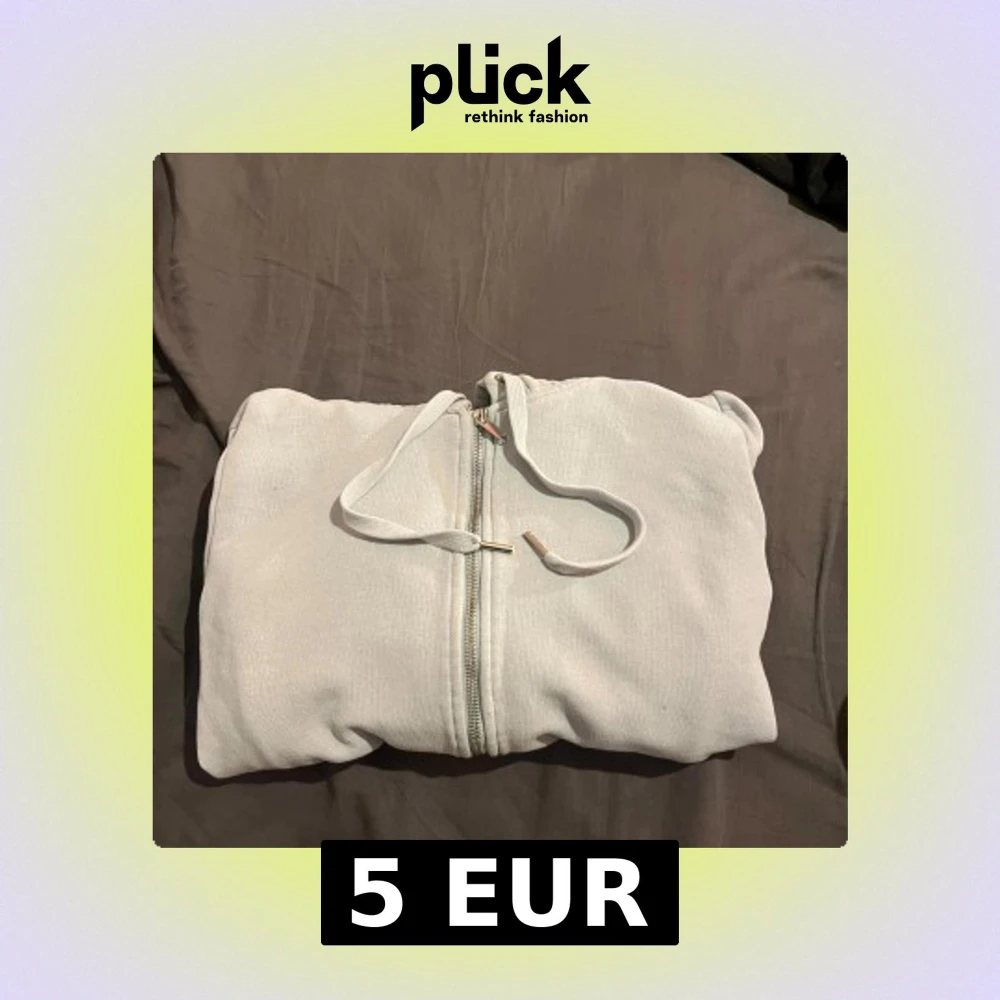 Säljer en stilren vit hoodie med dragkedja framtill och snörning i huvan. Perfekt för chill dagar eller när du vill ha en enkel och clean look. Mjuk och skön, passar till det mesta i garderoben.
