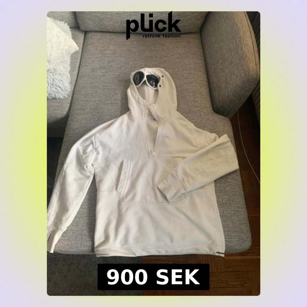 Säljer en clean vit hoodie från C.P. Company med deras ikoniska goggles i huvan. Tröjan har half zip, stor magficka och justerbar snörning i huvan. Perfekt för dig som vill sticka ut med streetwear-vibe och gillar detaljer. Materialet är mjuk bomull och passformen är normal. Det är en S men funkar både till xs och S. Skicka gärna pris förslag!