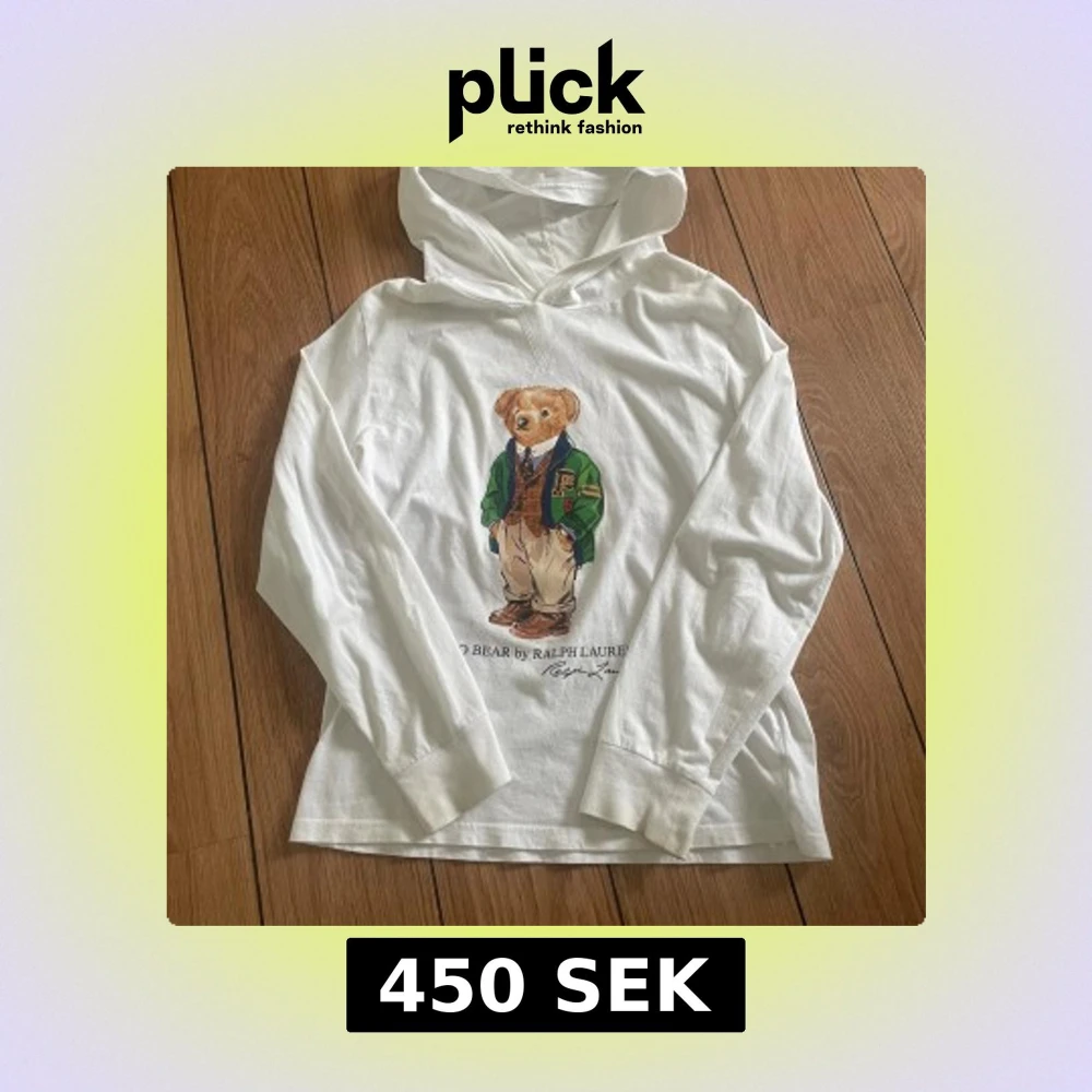 Vit hoodie från Polo Ralph Lauren med ikoniska Polo Bear-trycket framtill. Tröjan har huva, långa ärmar och är tillverkad i 100% bomull för en skön och avslappnad känsla. Perfekt för sommarn