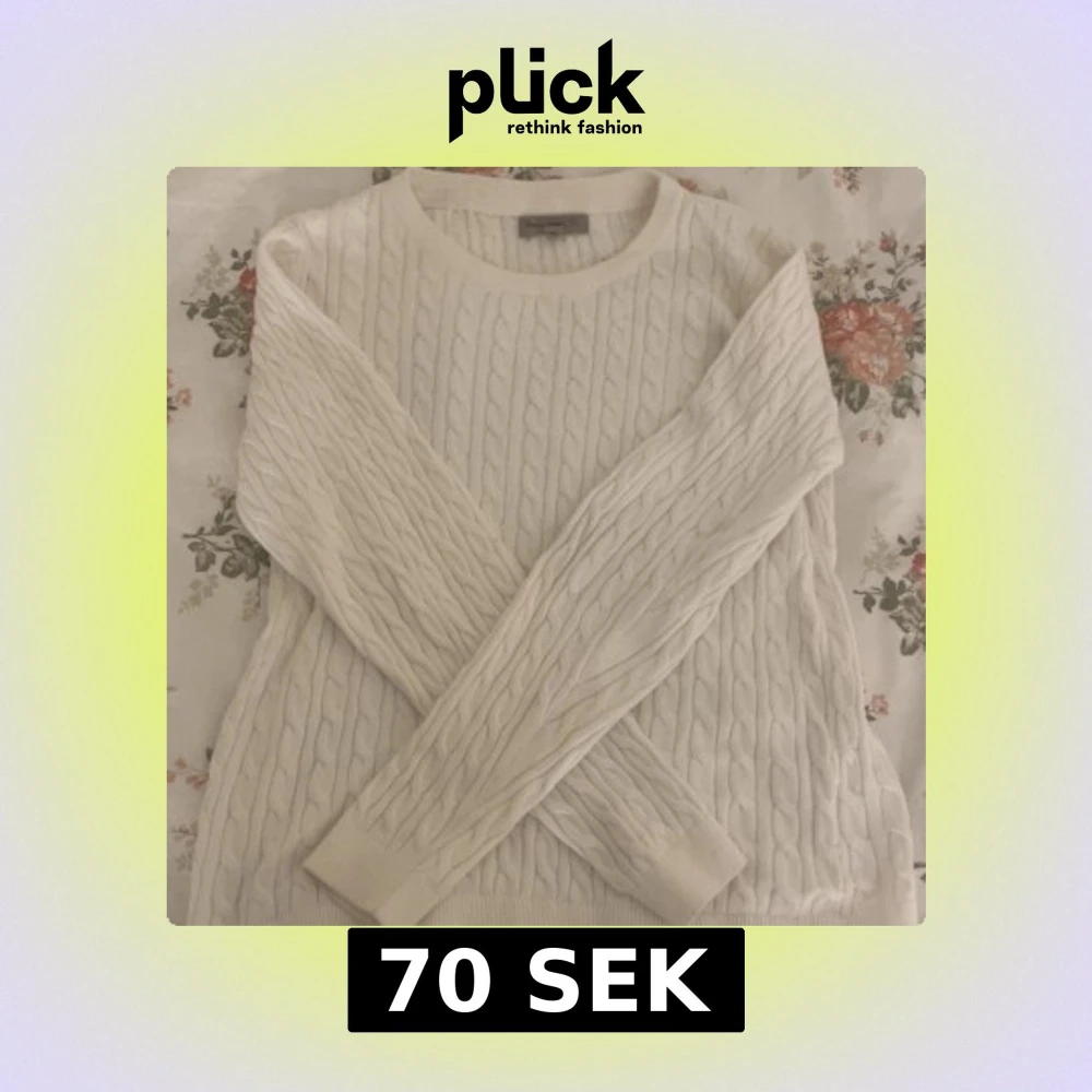 Säljer en vit kabelstickad tröja från Basic You (Ullared) i storlek M. Tröjan är gjord av ekologisk bomull, har rund hals och långa ärmar med ribbade muddar. Perfekt för dig som gillar klassisk och enkel stil med snygg struktur.