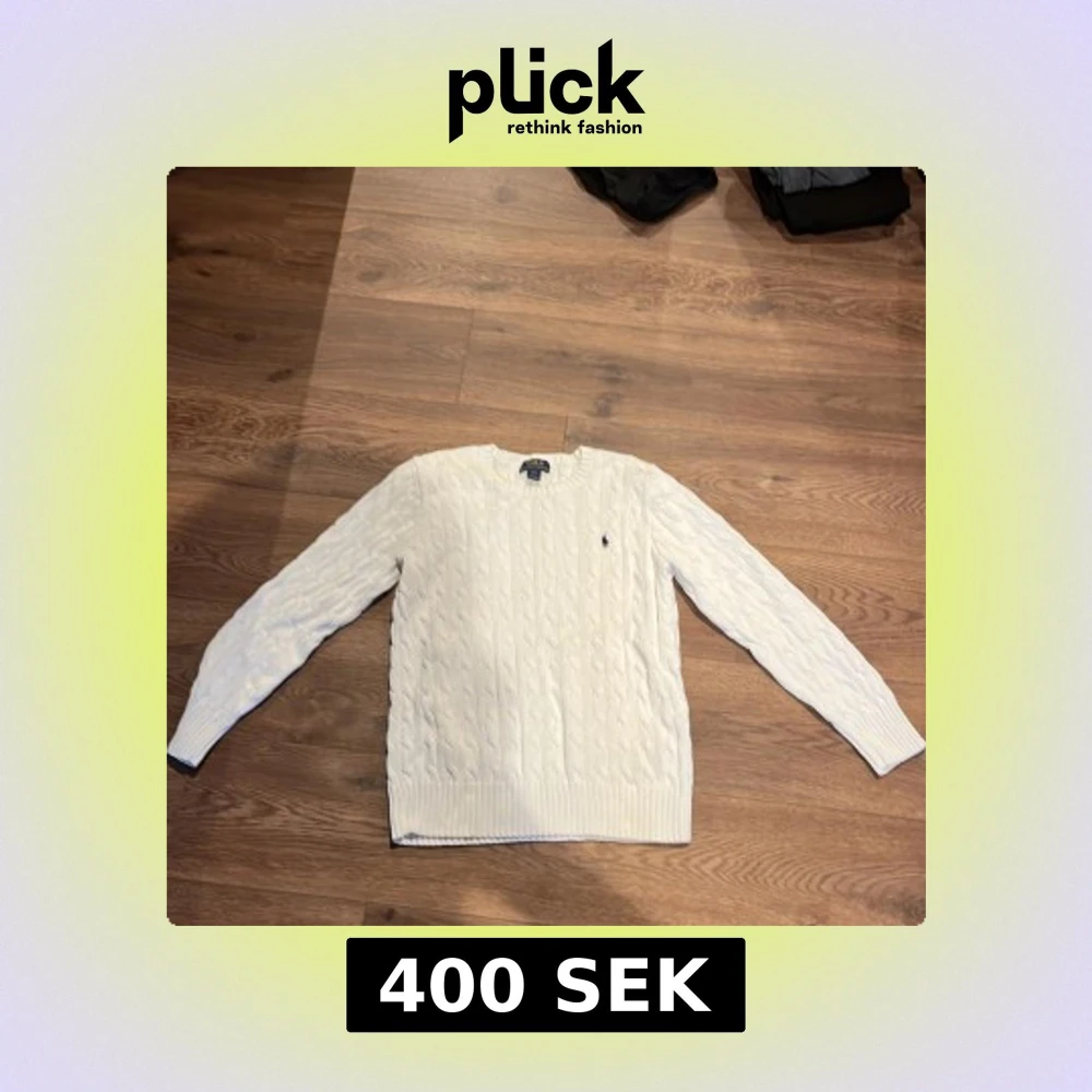Vit kabelstickad tröja från Polo Ralph Lauren med klassisk rund hals och broderad logga på bröstet. Tröjan är långärmad och har ribbade muddar och nederkant. Perfekt för dig som gillar en clean och tidlös stil.