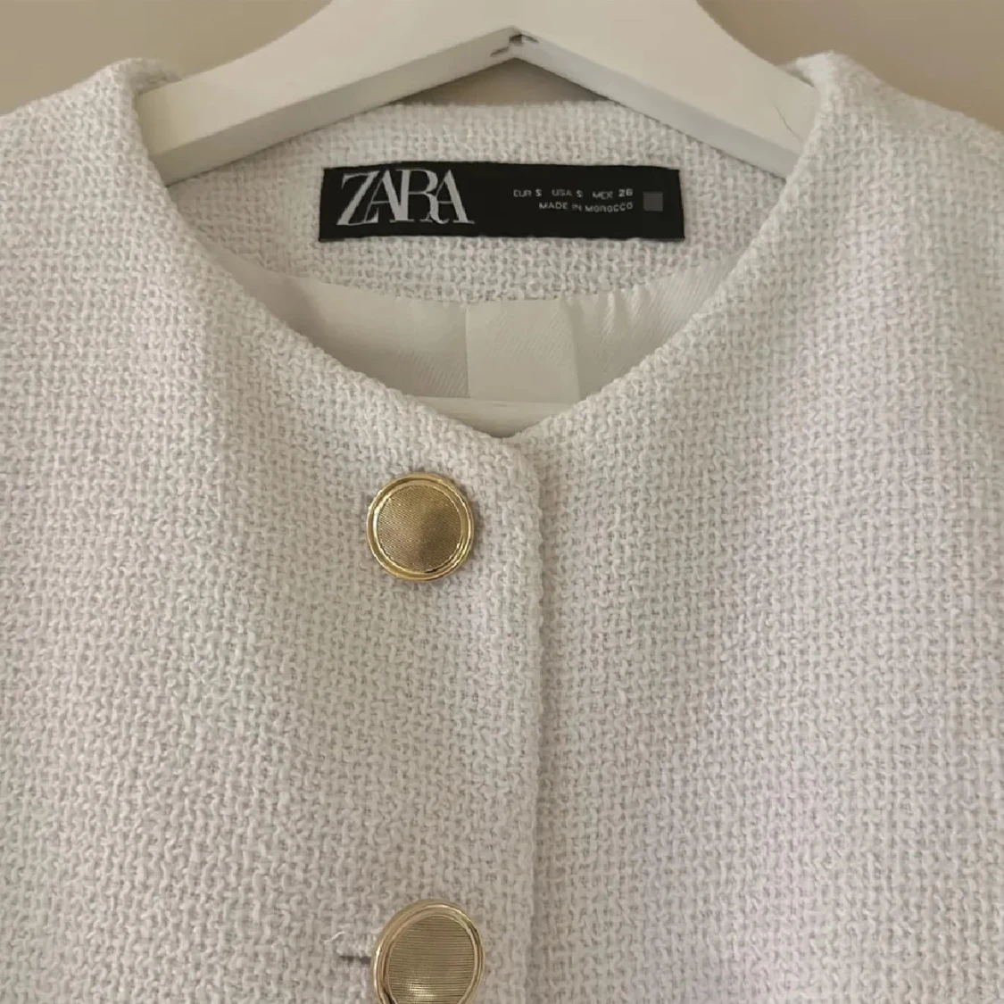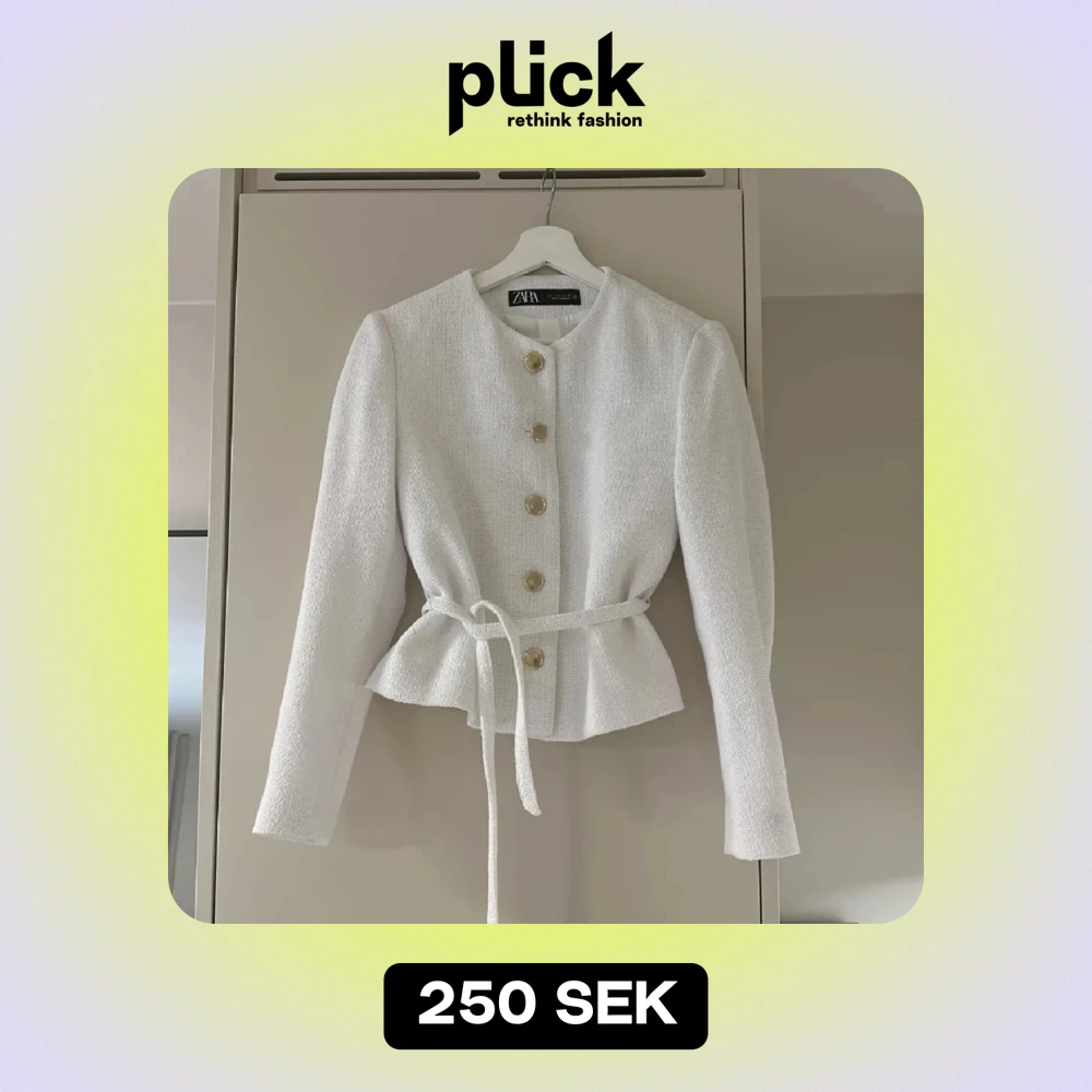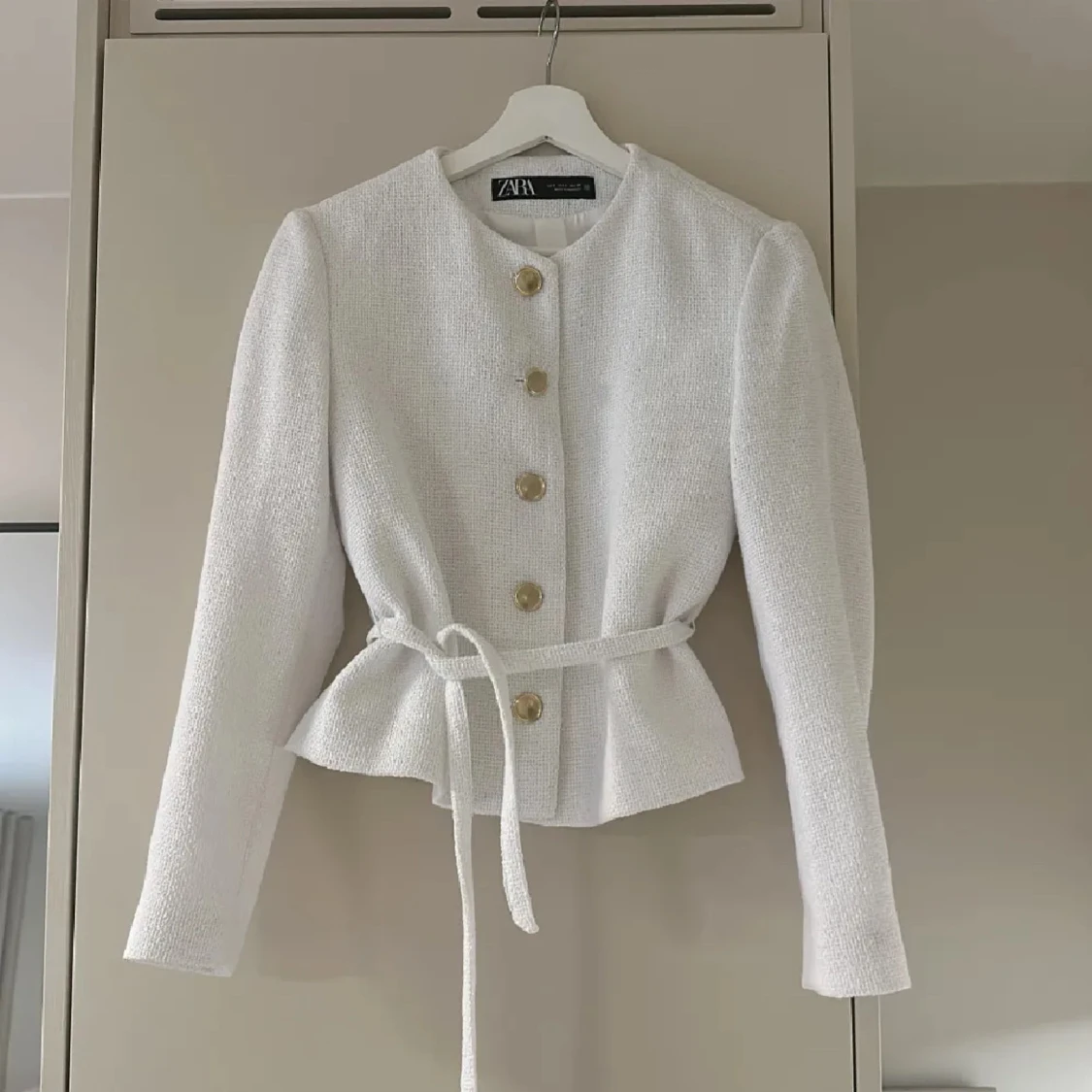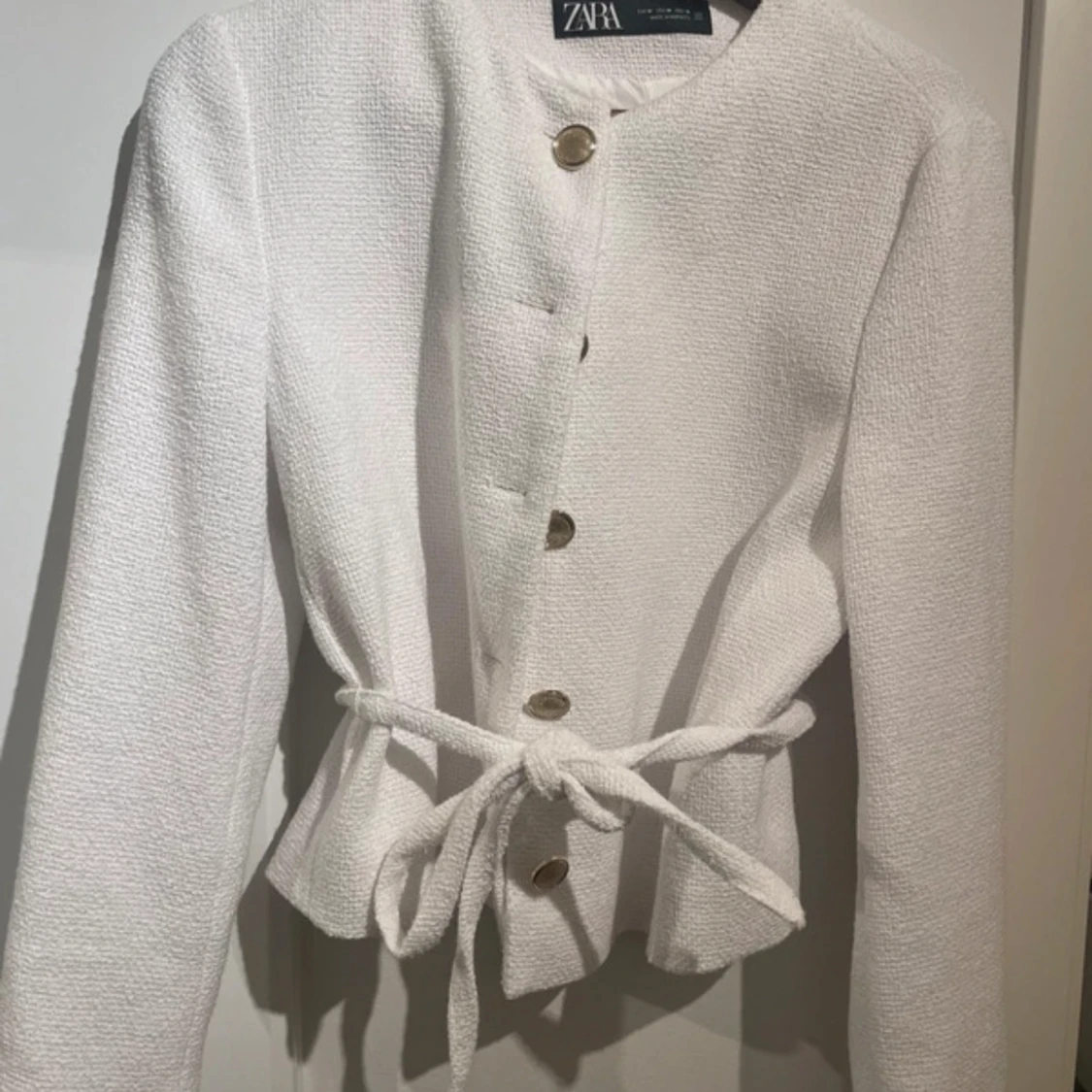 Säljer den populära kavajen/koftan från Zara i mycket bra skick. Aldrig använd och snöret går att ta på/av när man vill. Storlek M men är mer som S/M. Nypris: 700kr