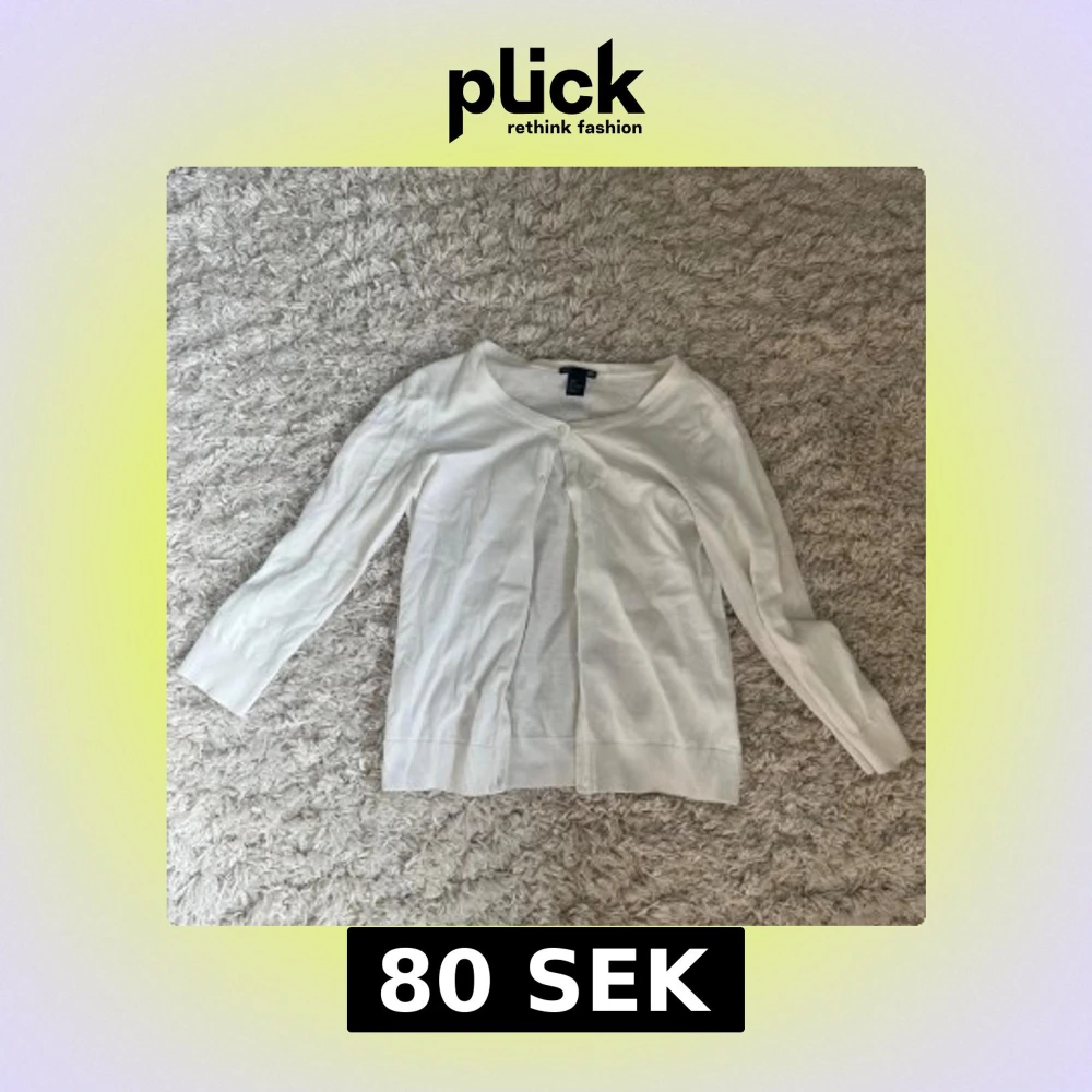 En klassisk vit kofta från H&M BASIC med rund halsringning och knappar framtill. Tröjan har långa ärmar och ribbade muddar vid ärmslut och nederkant. Perfekt att slänga över en topp eller klänning.