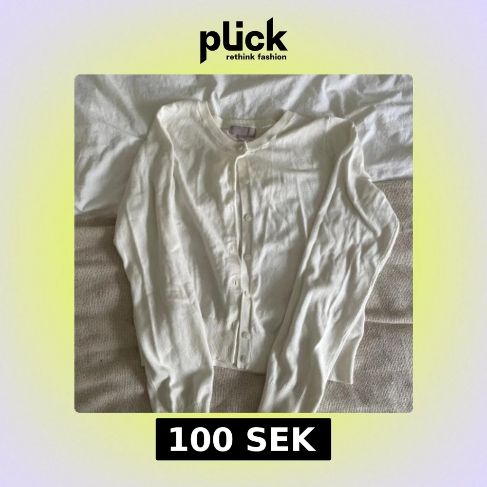 Klassisk vit kofta från H&M i storlek M. Den har rund halsringning, långa ärmar och knäppning framtill med matchande vita knappar. Tillverkad i mjuk bomull, perfekt att slänga över en topp eller klänning.