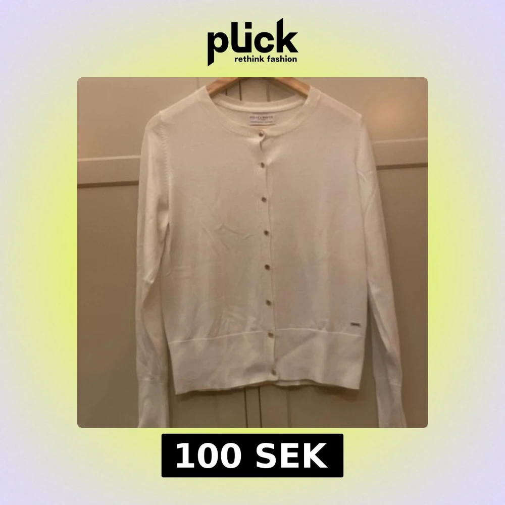 Klassisk vit kofta från Holly & Whyte by Lindex i storlek M. Koftan har rund halsringning, långa ärmar och knäppning med guldiga knappar framtill.