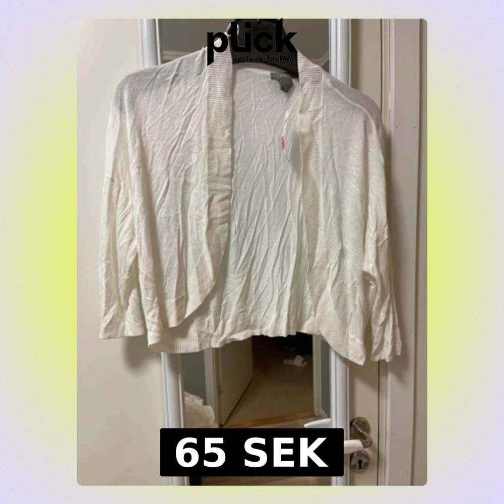 Säljer en vit, tunn och öppen kofta från Lindex med ribbade detaljer längs kragen och nederkant. Koftan har lång ärm och är gjord i mjuk bomull, perfekt att slänga över en topp när det är lite kyligt ute.