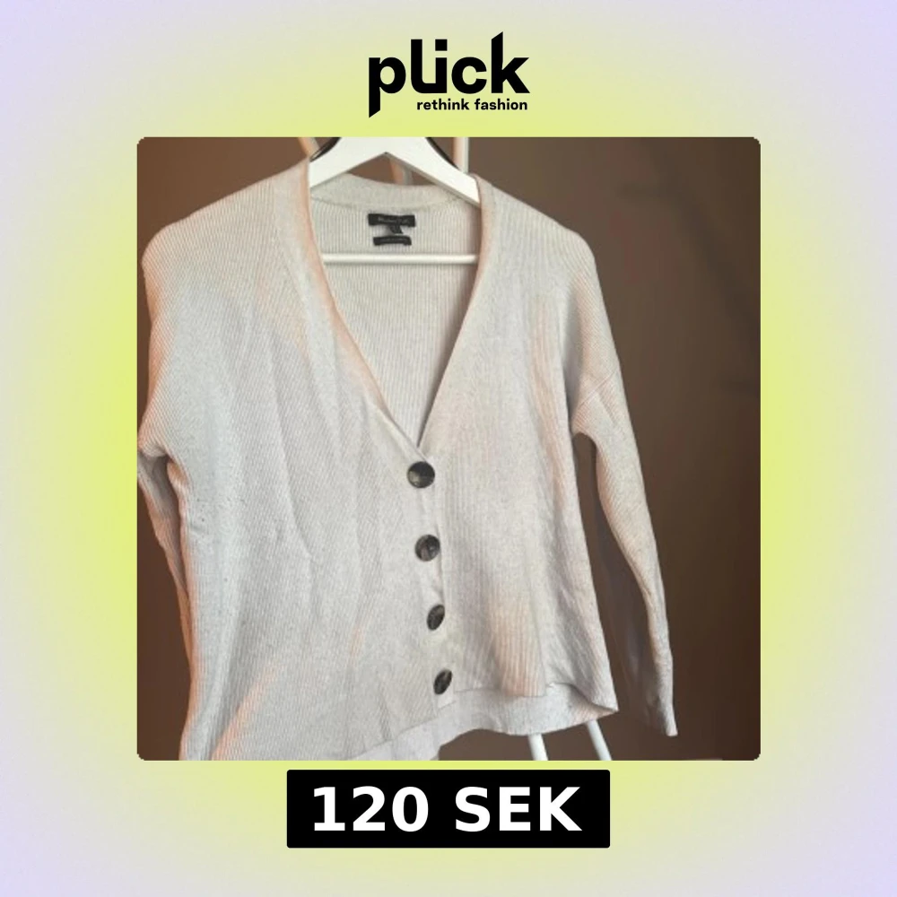 Ribbstickad beige kofta från Massimo Dutti med v-ringning och fyra stora knappar framtill. Koftan har lång ärm och en något croppad passform, perfekt att slänga över en t-shirt eller linne. Enkel och stilren design som funkar året runt.🍂🍁