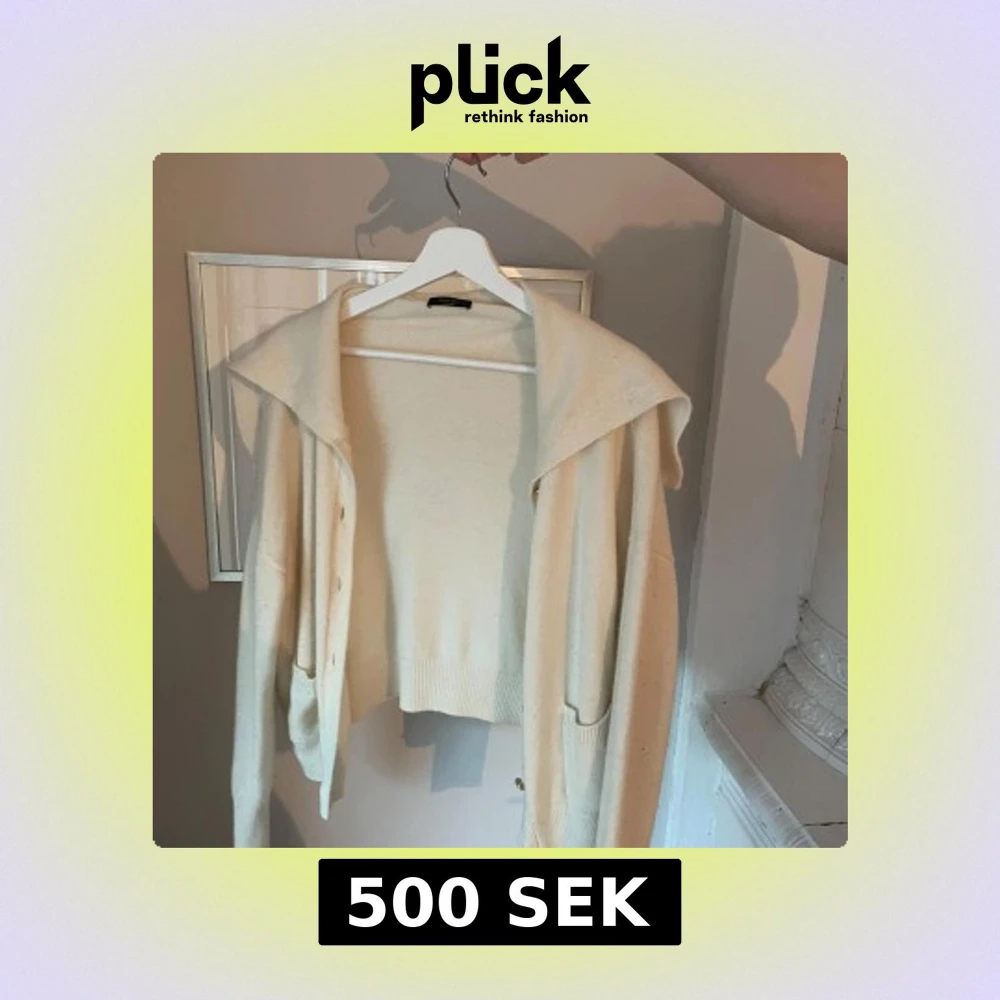 Superfin vit kofta från Massimo Dutti med guldknappar, två fickor framtill och en snygg krage. Koftan är stickad i mjukt material och har lång ärm och ribbade muddar. Perfekt för lager-på-lager och passar till allt. Jag är ca 165 cm, har oftast kläder i stl S/M och på mig sitter den perfekt. Den finns inte att köpa i butik längre. Koftan är inte använd så mycket, men kan vara lite nopprig på vissa ställen (se sista bilden), dock går det att ta bort. Annars superbra sick.