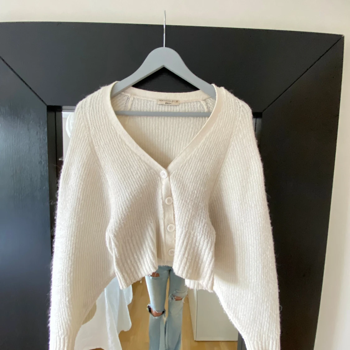 Jättefin och mysig vit kofta från Gina Tricot! Lite kortare modell med långa ärmar och knappar. Super snygg passform och jätteskönt material i alpackablandning! 🤍