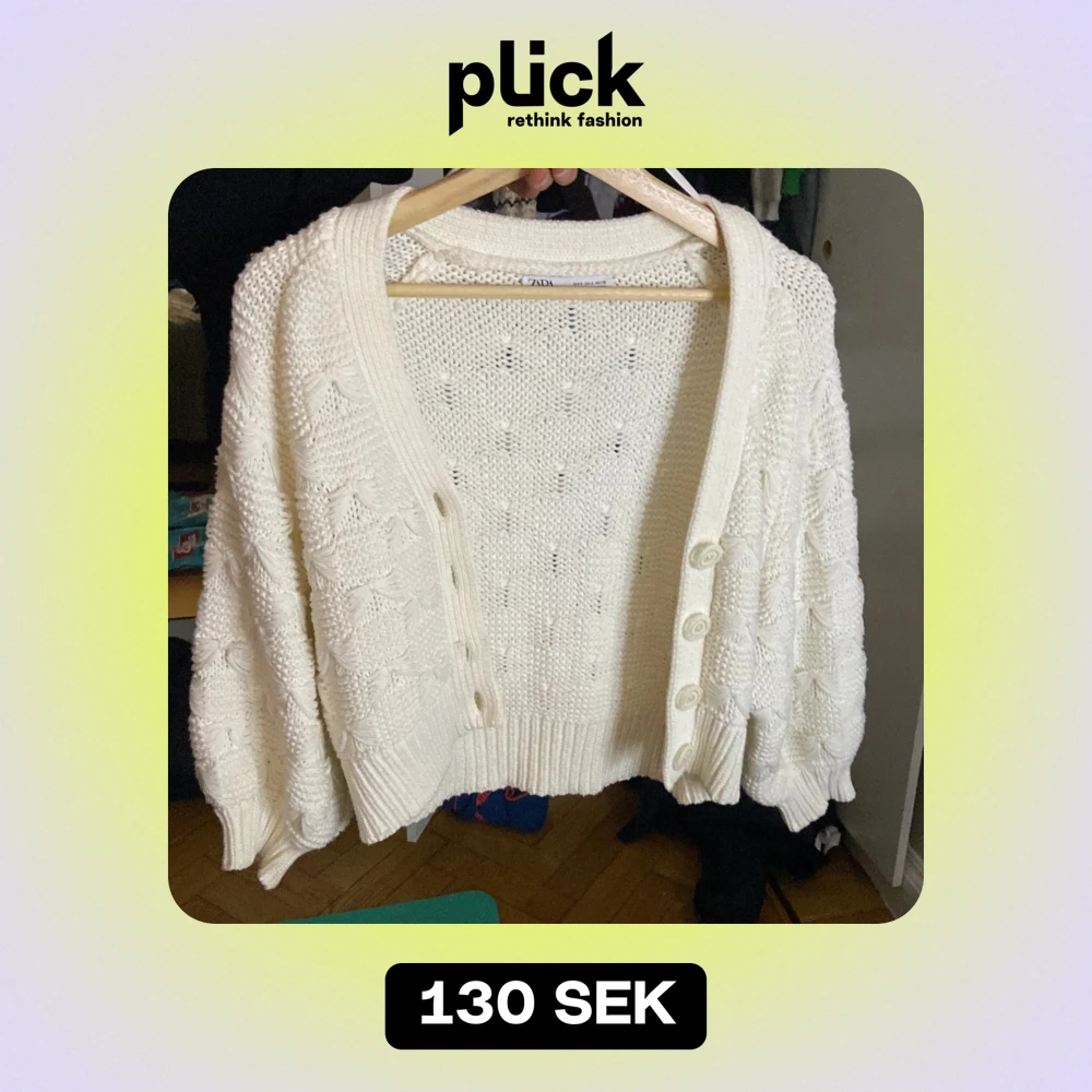 Är en vit kofta ifrån Zara som ej kommit till användning. I storlek S och har korta armar.