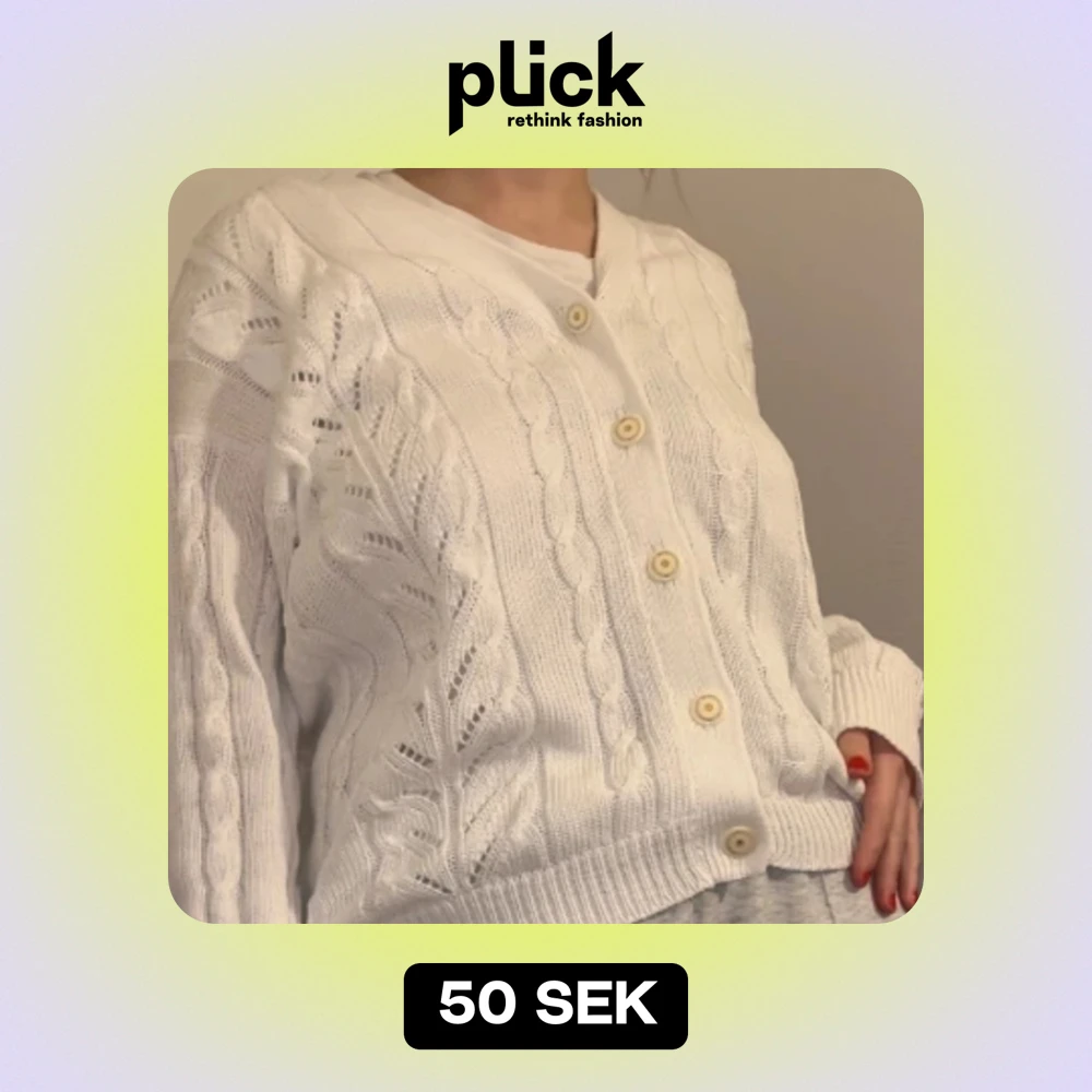 Lite oversized kritvit ribbad kofta. Köpt second hand.