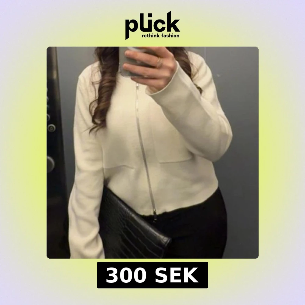 Snygg vit cardigan med rak passform och lång ärm. Tröjan har en stilren design med dragkedja framtill och är perfekt att matcha med svarta jeans eller kjol. Materialet känns mjukt och bekvämt mot huden, och den neutrala färgen gör den enkel att styla.