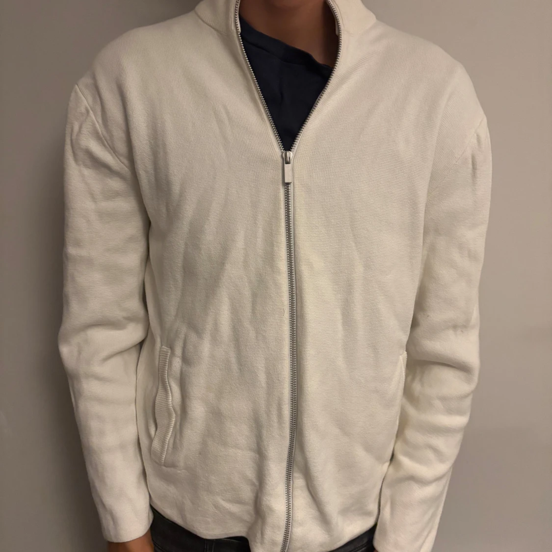 Snygg vit kofta med hel dragkedja framtill och två fickor på sidorna. Tröjan har en enkel och clean look med långärmad passform och ribbad krage. Perfekt för lager-på-lager och passar till det mesta i garderoben.