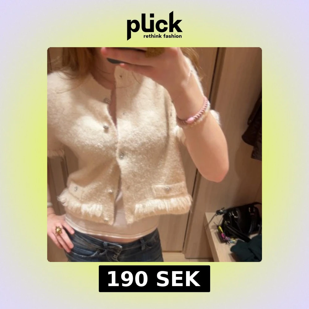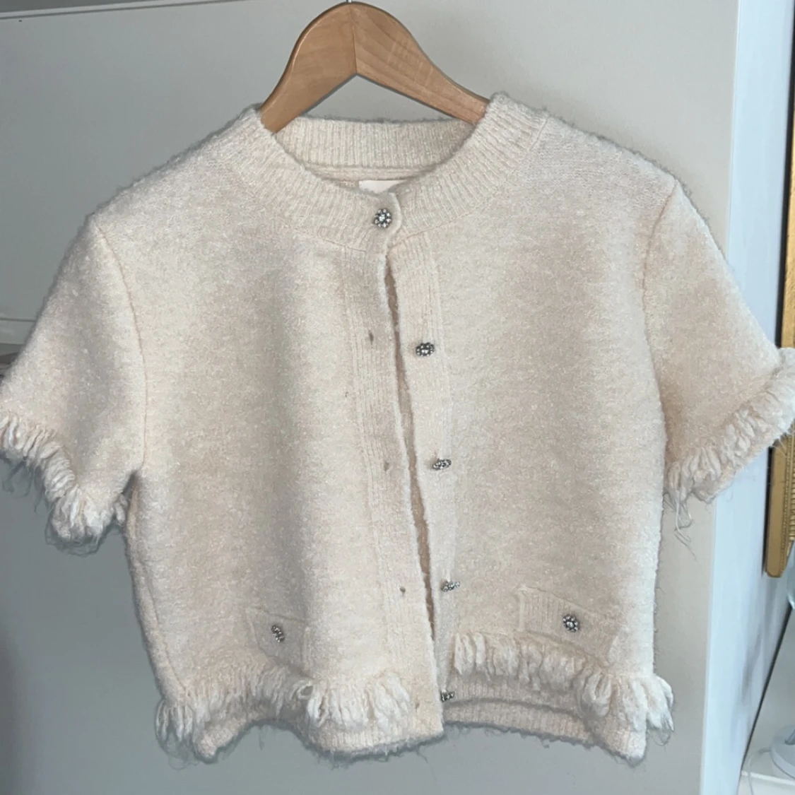 Säljer min söta vita kortärmade kofta från H&M som aldrig är använd. Säljer då den inte kommer till användning. Koftan är i storlek L men passar mig lite oversized som är storlek S.