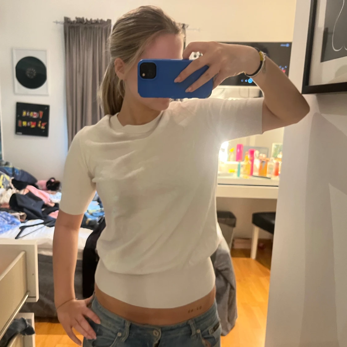 Säljer en vit stickad T-shirt från Zara. Storlek M men passar S. Ganska använd men okej skick💖