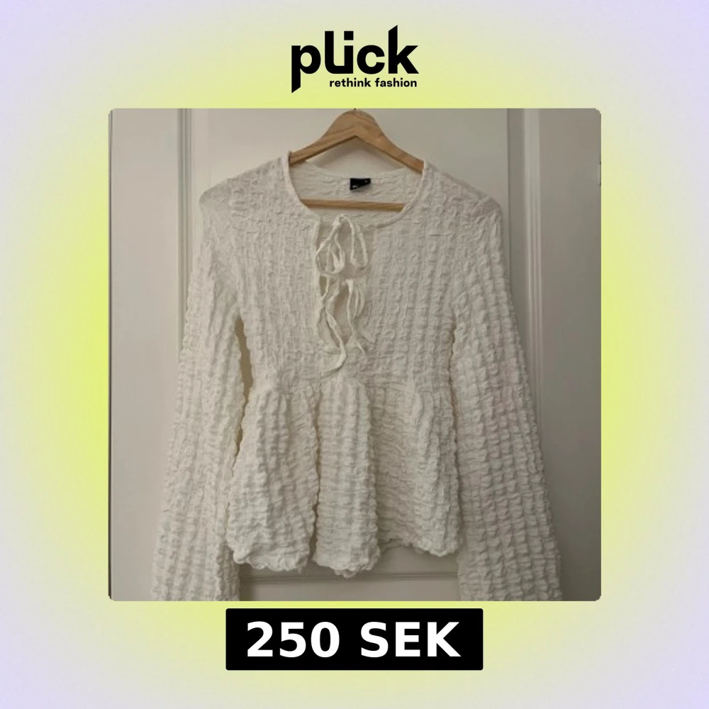Charmig vit blus med lång ärm och knytning framtill. Den har en texturerad yta som ger en unik look. Perfekt för att lägga till en romantisk touch till din outfit.