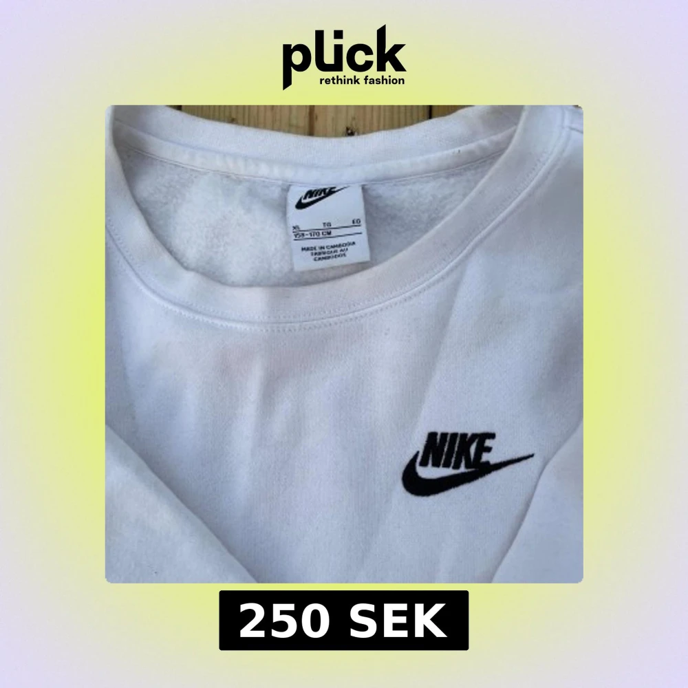 Klassisk vit sweatshirt från Nike i storlek XL med svart broderad logga på bröstet. Tröjan har rund halsringning och långa ärmar. Tillverkad i mjuk bomullsmix som är skön att ha på sig. Perfekt för en clean och sportig look. pris diskuteras 158 170