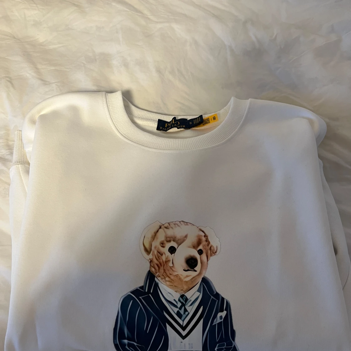 Vit långärmad t-shirt från Polo Ralph Lauren med ikoniskt Polo Bear-tryck framtill. Klassisk rund halsringning och relaxed fit. Perfekt statement-plagg för dig som gillar streetstyle och preppy vibes. Tröjan är helt ny har bara testat den men den passade ej eftersom den var för liten. Pris kan diskuteras.