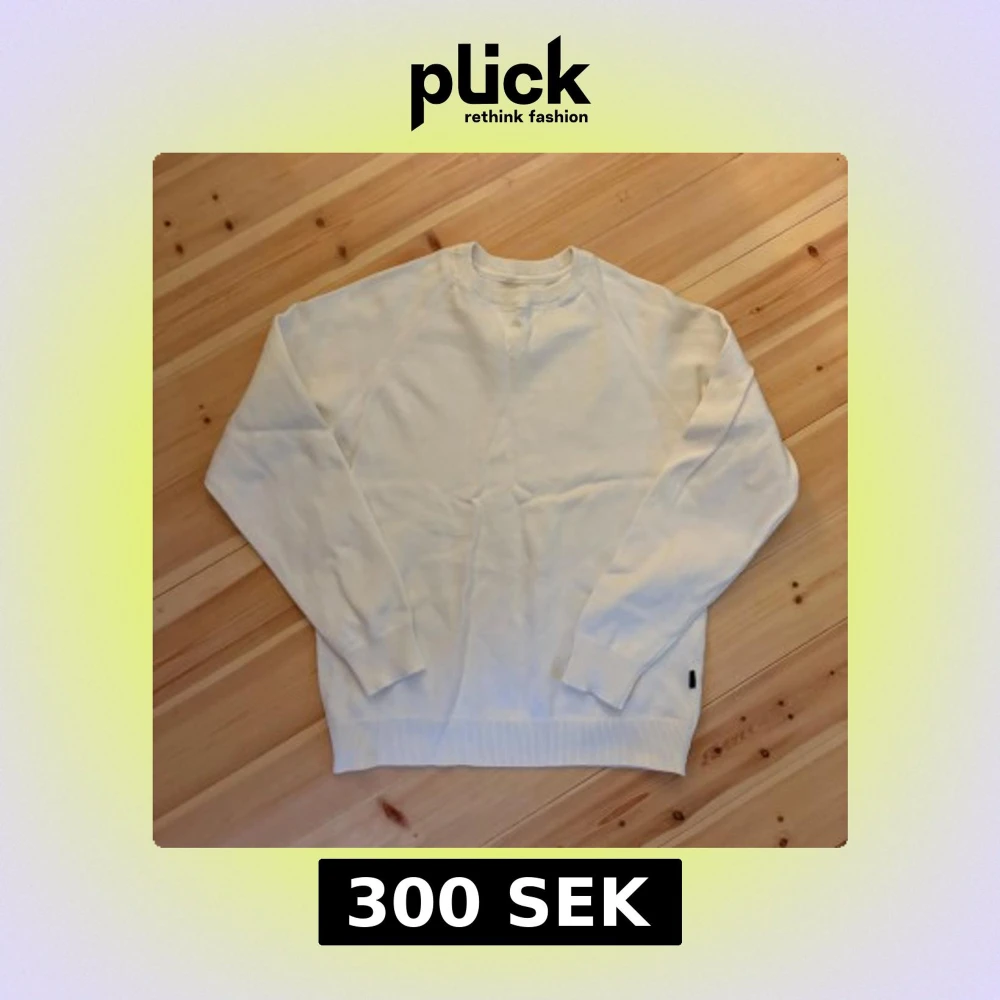 Säljer en enkel och stilren vit sweatshirt med rund hals och långa ärmar. Tröjan har ribbade muddar vid ärmslut och nederkant, perfekt för dig som gillar en clean och klassisk look. Passar dig som vill ha en basic tröja i garderoben.