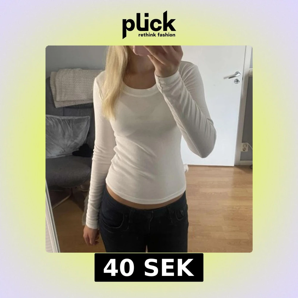 Säljer en enkel och stilren vit långärmad tröja med tight passform. Passar till allt och är superenkel att matcha med olika outfits. Nästan oanvänd 🩷