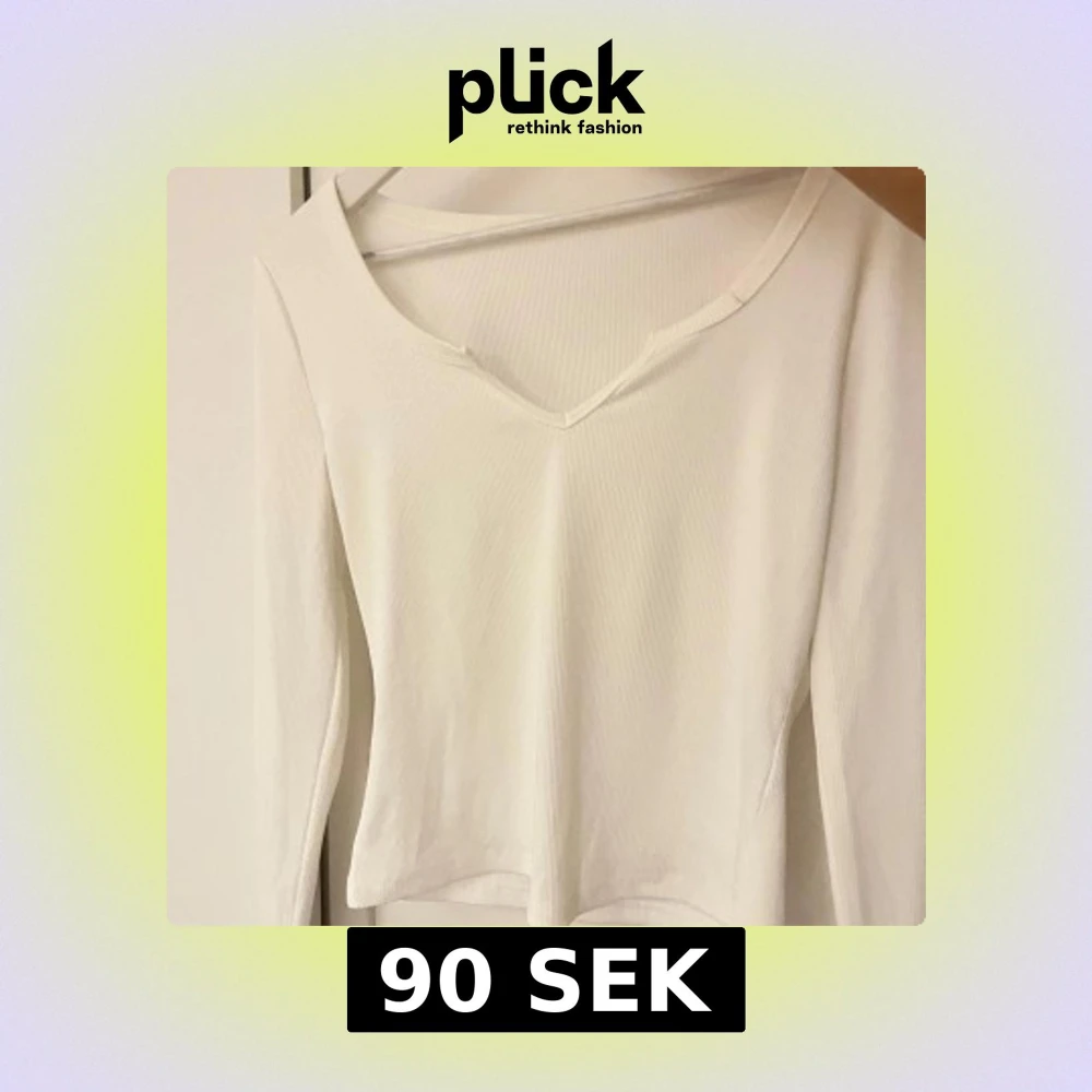 Säljer en stilren vit ribbad topp med lång ärm och v-ringad hals. Enkel och fin som den är! Inga märken eller defekter. 50 kr