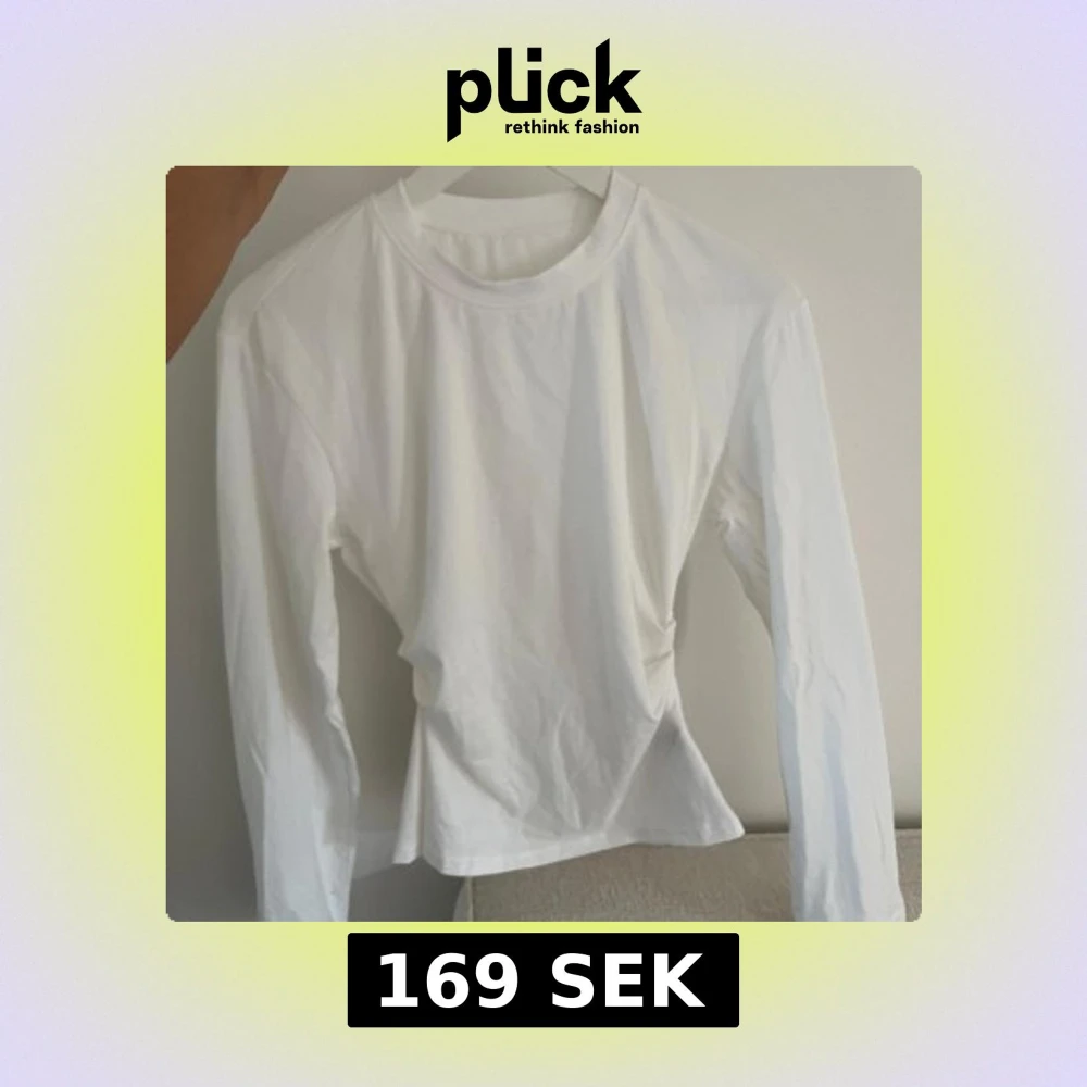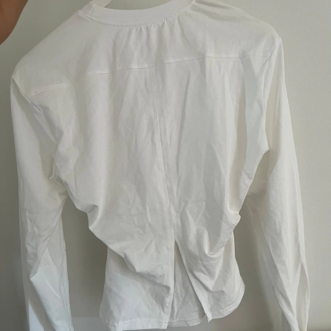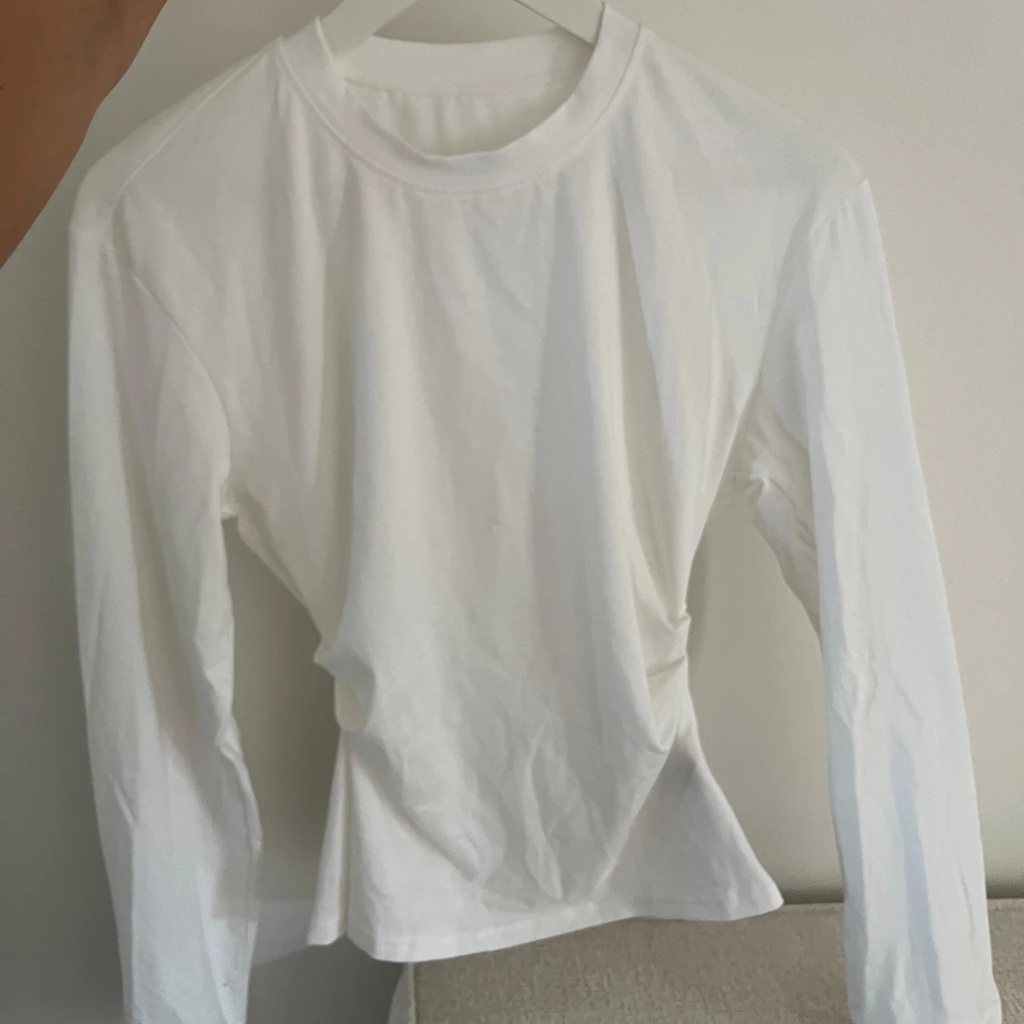 Säljer en enkel och stilren vit långärmad topp. Modellen är figursydd med rund halsringning. Perfekt basplagg för garderoben!
