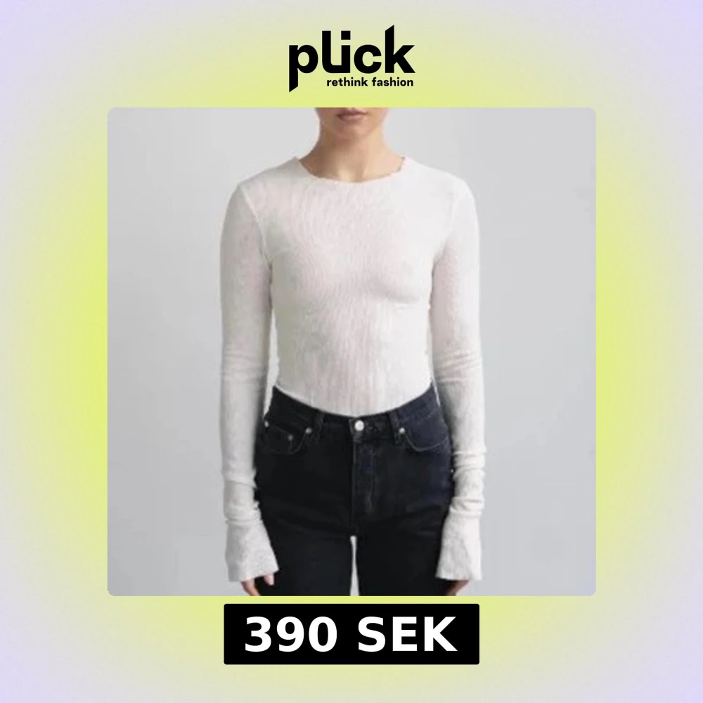 Vit långärmad topp från A-DSGN i ribbad bomullsmix. Modellen är tight och har en enkel, stilren design med rund halsringning och extra långa ärmar. Perfekt att styla med jeans eller kjol för en clean look.