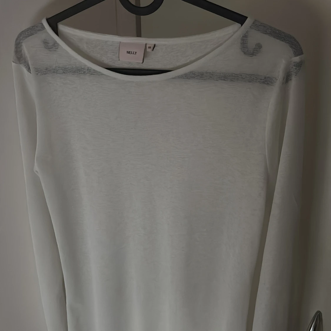Säljer en enkel och stilren vit långärmad topp från Nelly. Toppen har rund halsringning och är tillverkad i ett mjukt material som passar perfekt till många olika outfits. Den är i stl XL men sitter som en S