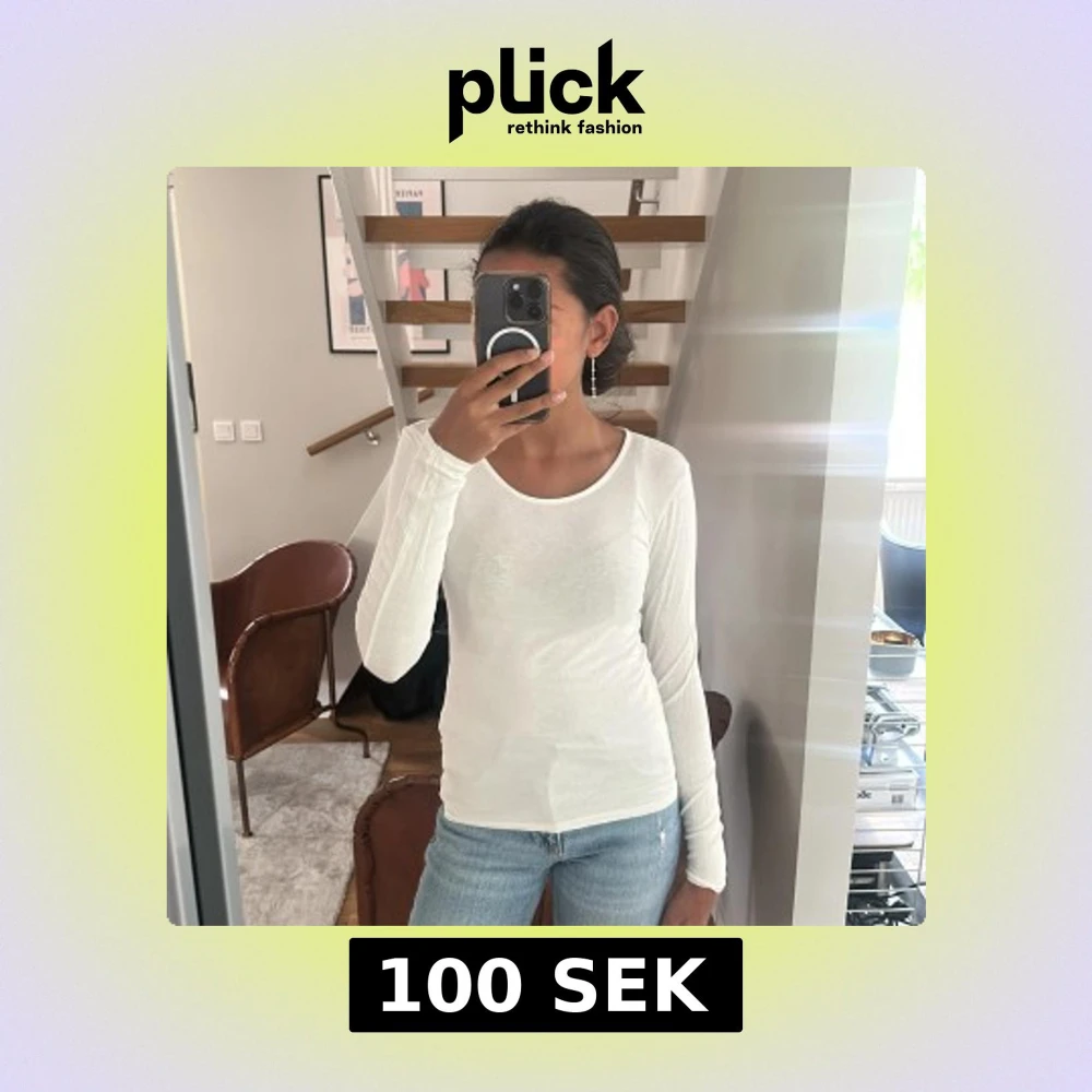 Säljer en enkel och fräsch vit långärmad topp i mjuk bomull. Modellen är figurnära med rund halsringning och passar perfekt till jeans eller kjol. Stilren och lätt att matcha med andra plagg.