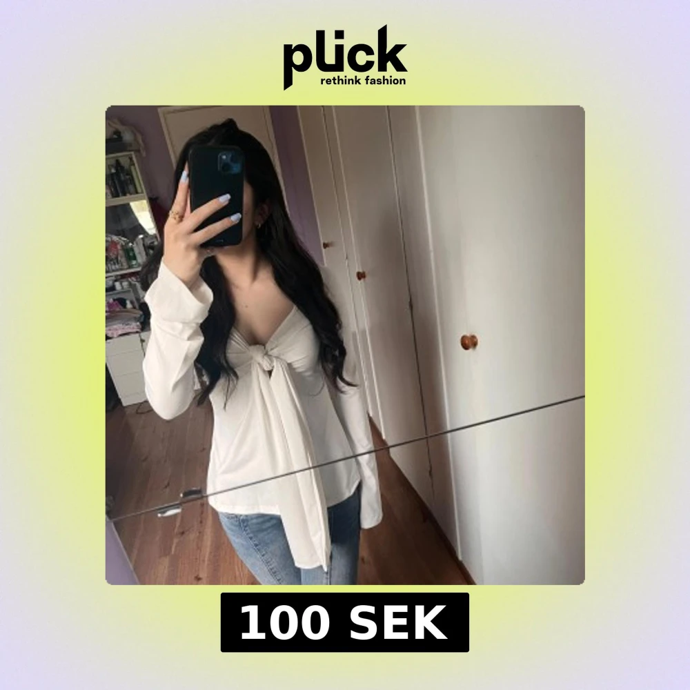 Säljer en vit långärmad topp från SHEIN med snygg knytning framtill. Toppen har en figurnära passform och är tillverkad i ett mjukt material som känns skönt mot huden. Perfekt att styla med jeans eller kjol.