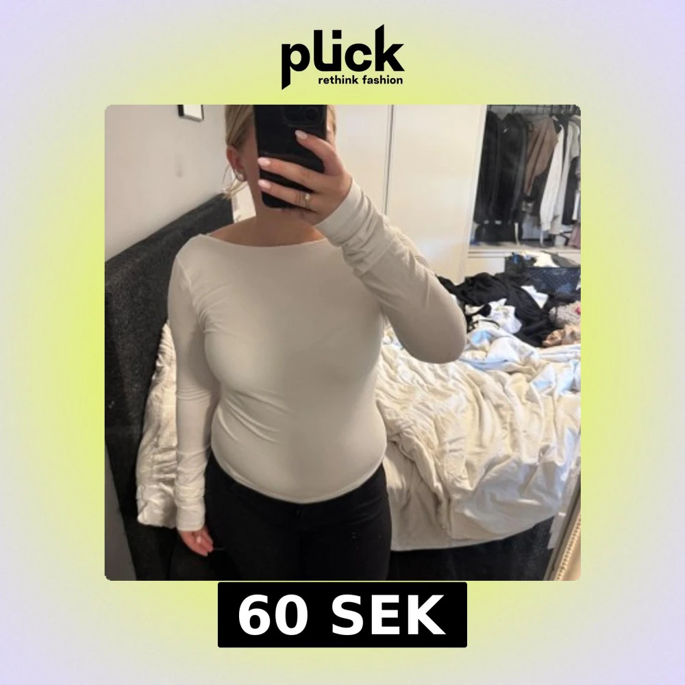 Säljer en vit långärmad topp med snygg öppen rygg och bred halsringning. Modellen är tight och sitter riktigt snyggt på kroppen. Materialet är mjukt och stretchigt, troligen bomull med lite syntet. Perfekt för dig som gillar stilrena och enkla plagg med en twist.