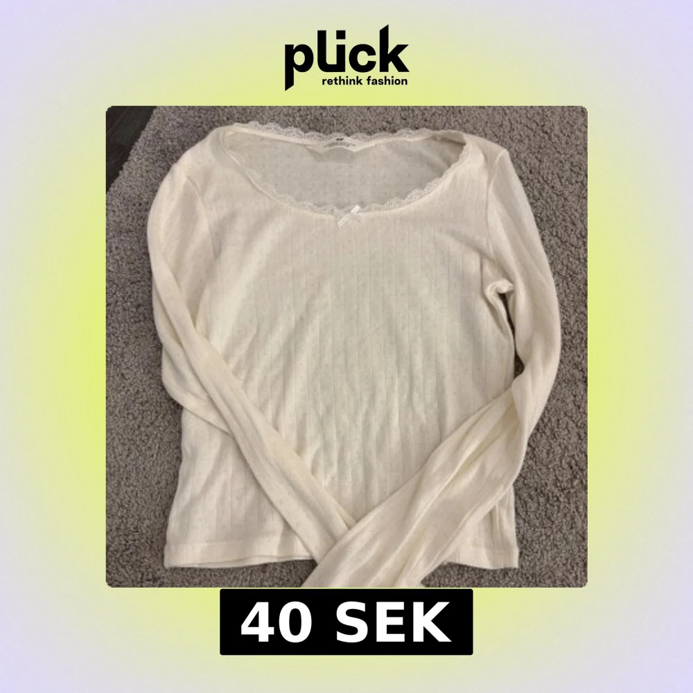 Söt vit långärmad topp från H&M med diskret hålmönster, spetskant runt halsen och en liten rosett framtill. Tillverkad i mjuk bomull, perfekt för dig som gillar romantiska detaljer och enkel stil.