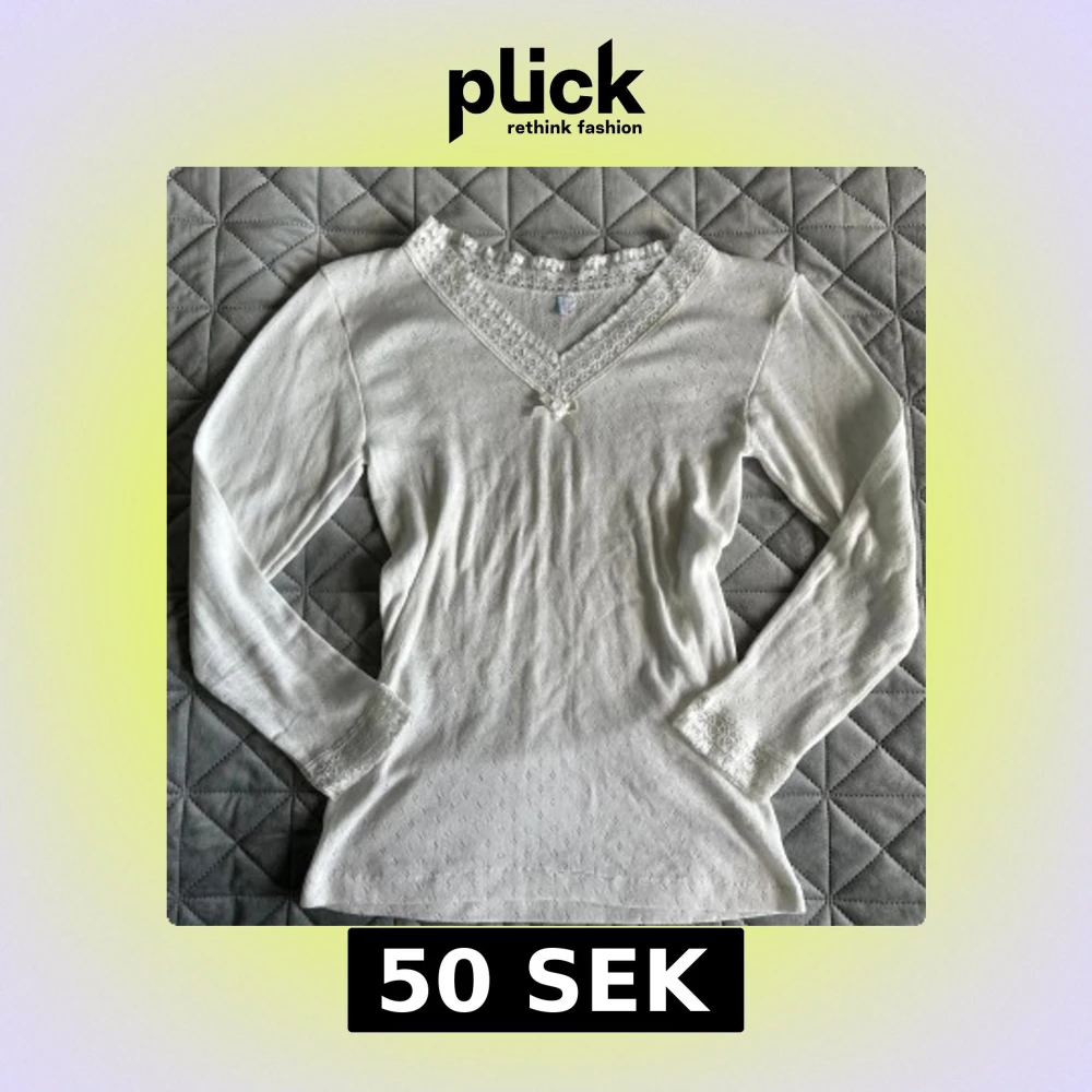 Söt vit långärmad topp med v-ringning och spetsdetaljer.