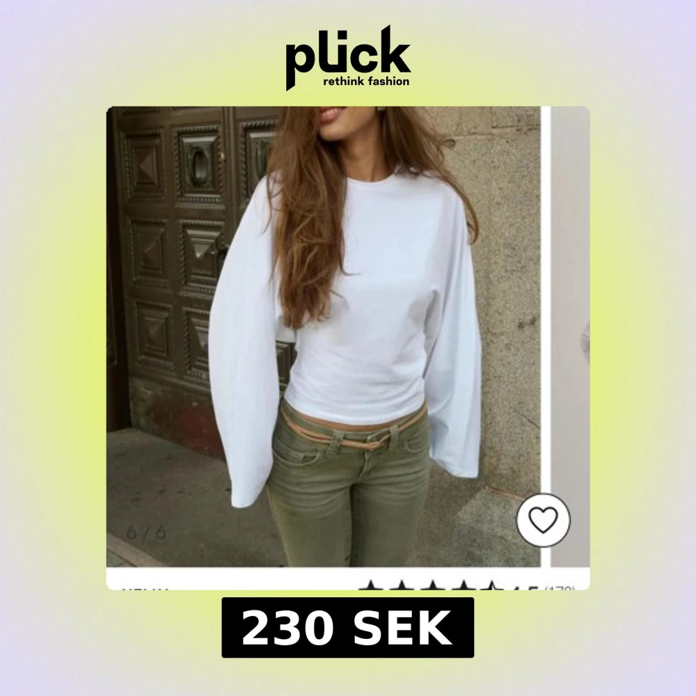 Säljer en vit långärmad topp med riktigt vida ärmar och rund halsringning. Tröjan har en clean och stilren look, perfekt att styla med jeans eller kjol. Materialet känns mjukt och bekvämt mot huden.