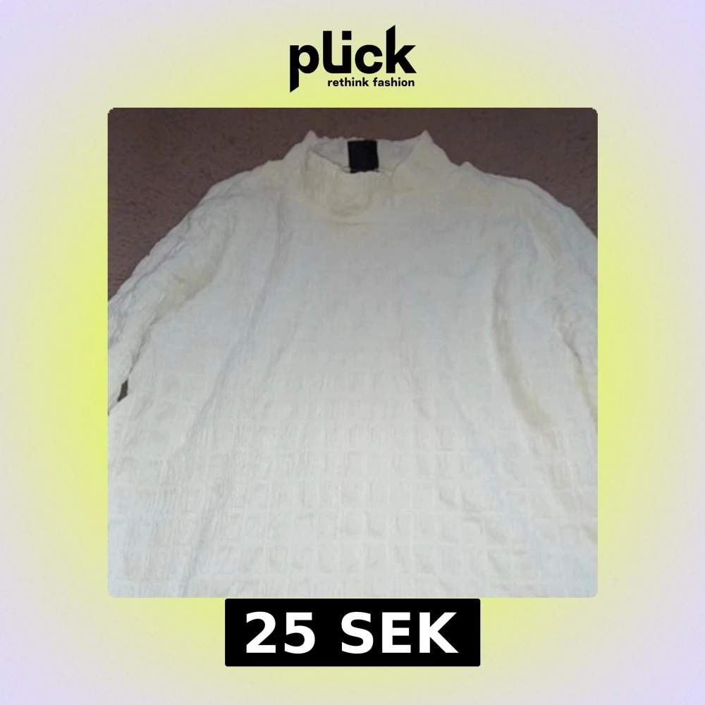 Säljer en vit långärmad topp med en unik textur. Toppen har en hög krage och ett subtilt rutmönster som ger en stilren look. Perfekt för att lägga till en touch av elegans i din garderob.