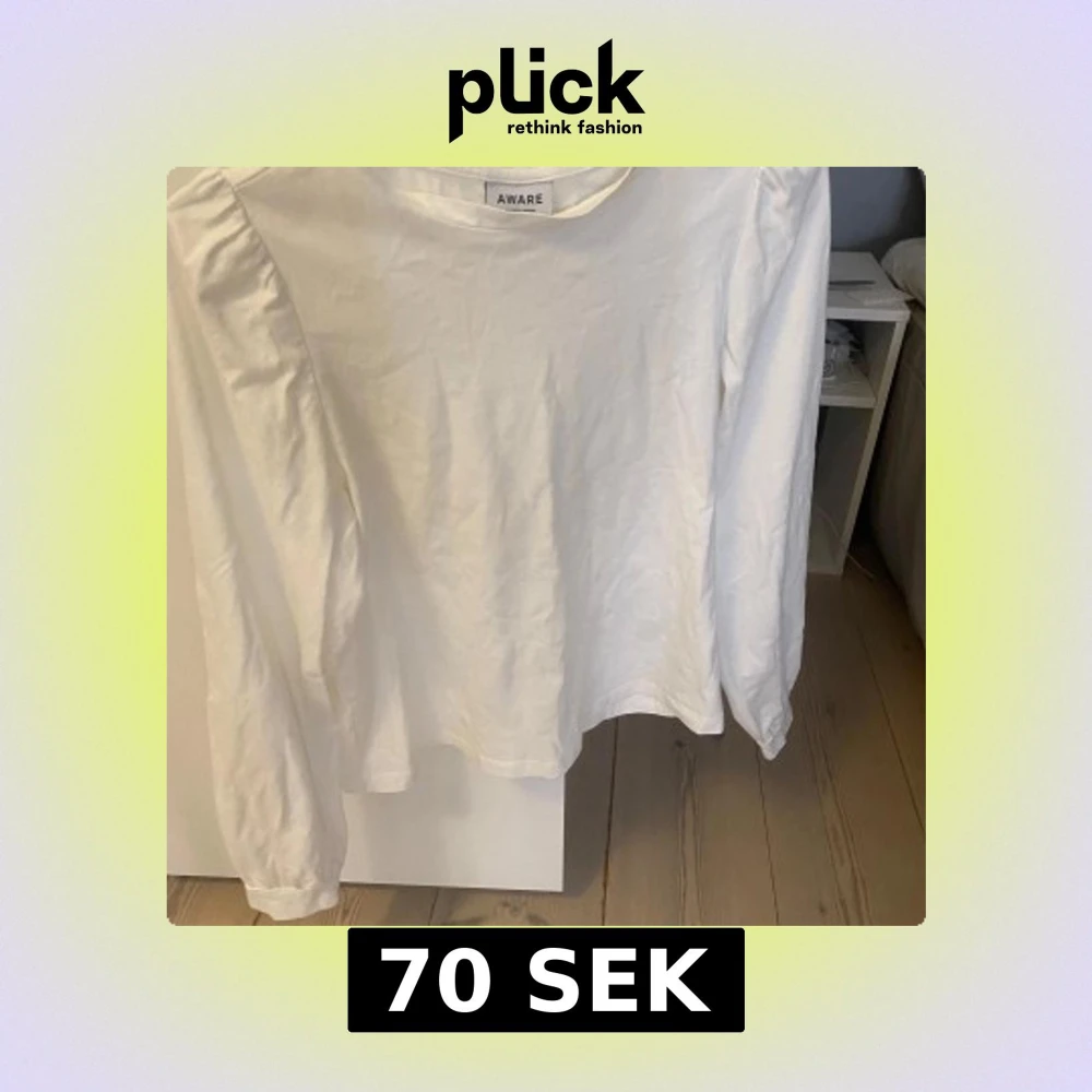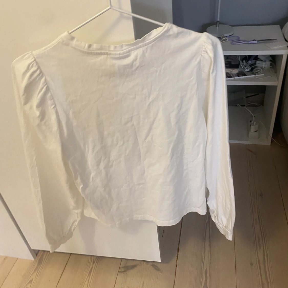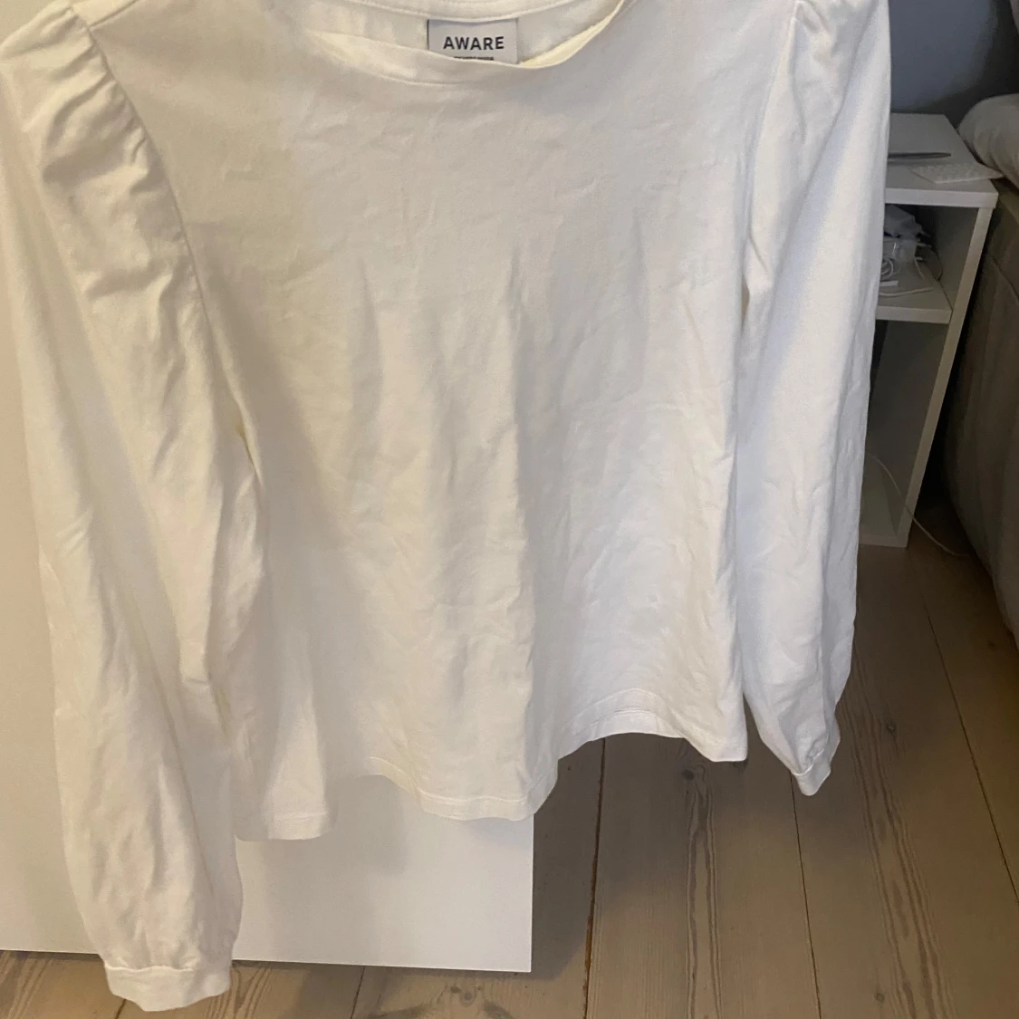Säljer en vit långärmad tröja med puffiga axlar ifrån ifrån AWARE by vero moda
