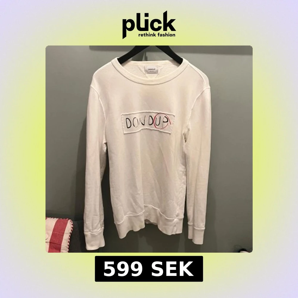 Säljer en stilren vit långärmad tröja från Dondup med ett broderat märke på bröstet. Perfekt för en avslappnad look.
