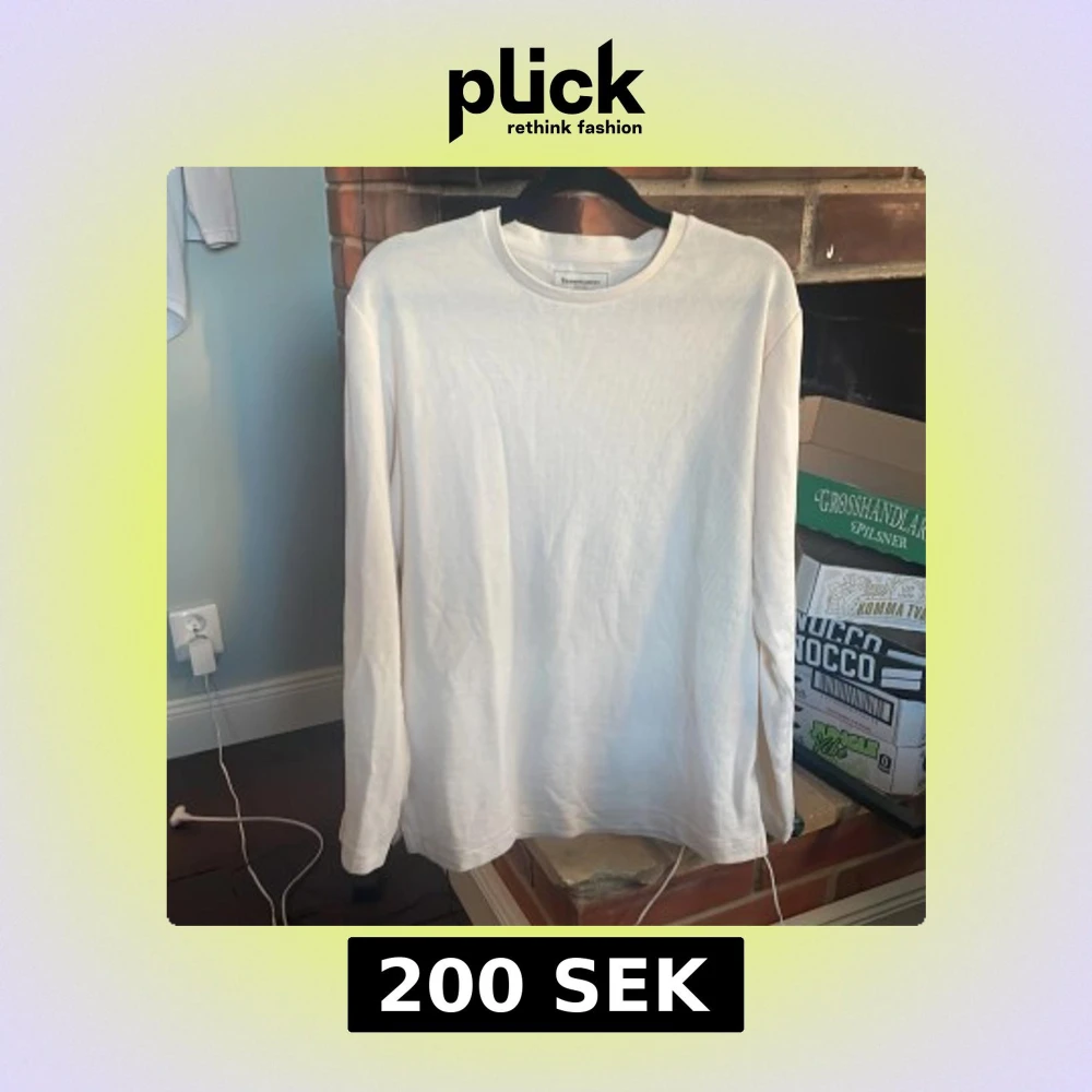 Klassisk vit långärmad tröja från Dressmann i storlek S. Passformen är S-M, passar någon runt 175-178 cm skulle jag säga. Riktigt fint skick.