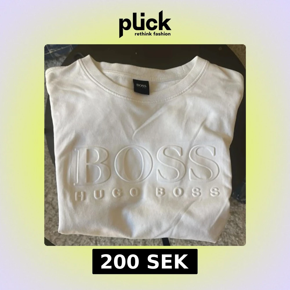 Säljer en stilren vit långärmad tröja från Hugo Boss med upphöjd logotyp framtill. Tröjan har rund halsringning och är tillverkad i mjukt material. Perfekt för en clean och klassisk look.