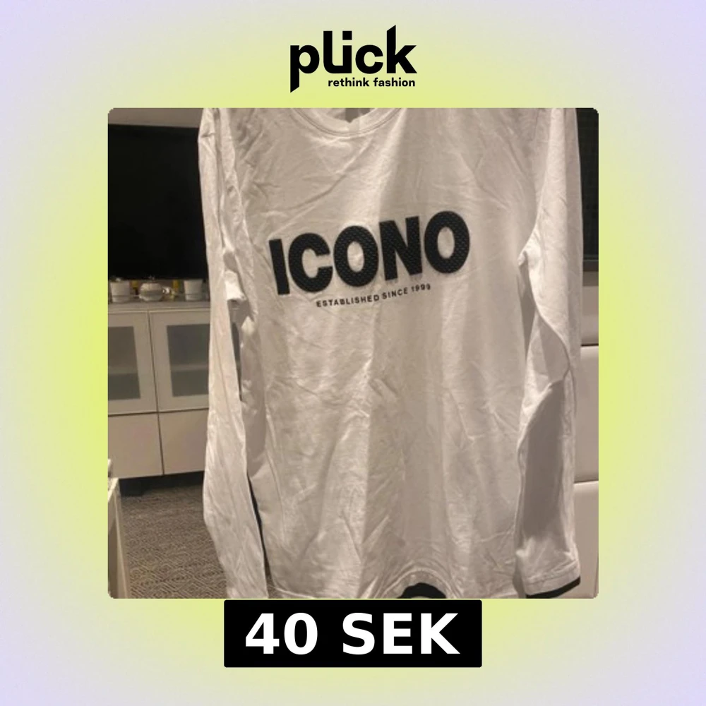 Säljer en vit långärmad tröja från ICONO i regular fit med stor svart logga framtill. Tröjan är tillverkad i mjuk bomull och har en enkel, clean design utan extra detaljer. Perfekt för dig som gillar stilrena plagg med statement-tryck.