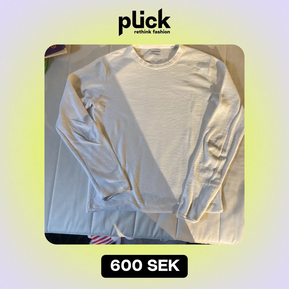 Säljer en stilren vit långärmad tröja från Jack & Jones. Riktigt stilig och grisch. Den är gjord av mjukt bomulls och linen material som är skönt mot huden. Passar perfekt till jeans eller chinos för en avslappnad look.