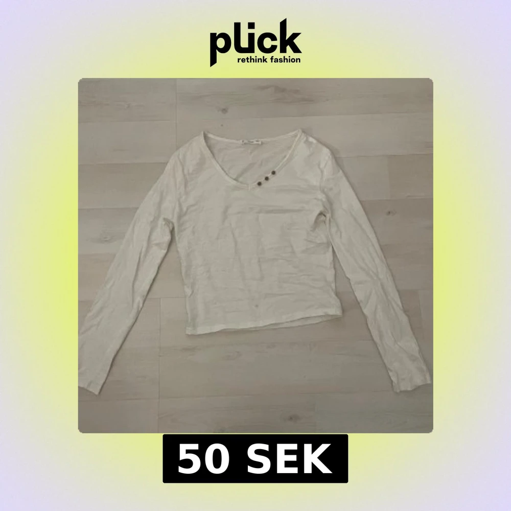 Vit långärmad tröja från Mango med v-ringad hals och tre små dekorativa knappar vid halsringningen. Tröjan är i mjuk bomull och har en enkel, clean look som funkar till allt. Perfekt för dig som gillar minimalistisk stil och vill ha något bekvämt. Knappt använd ca 2 gånger.